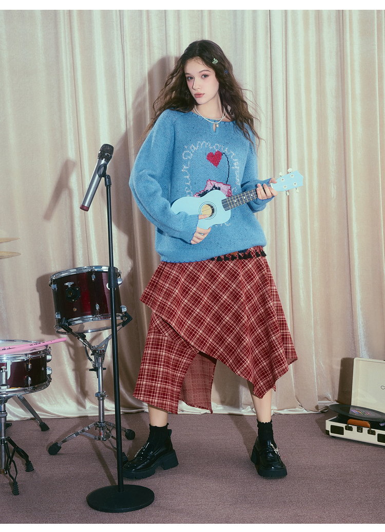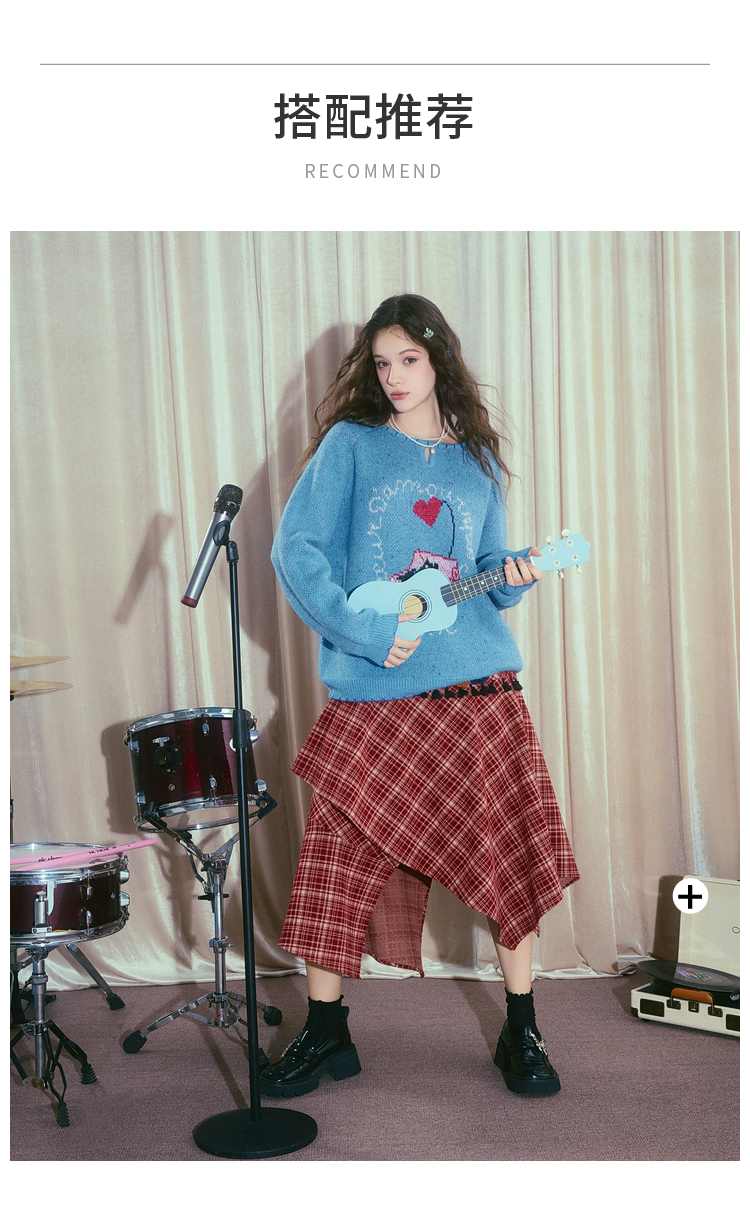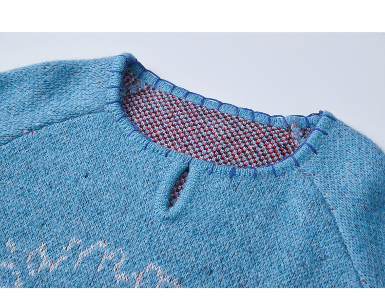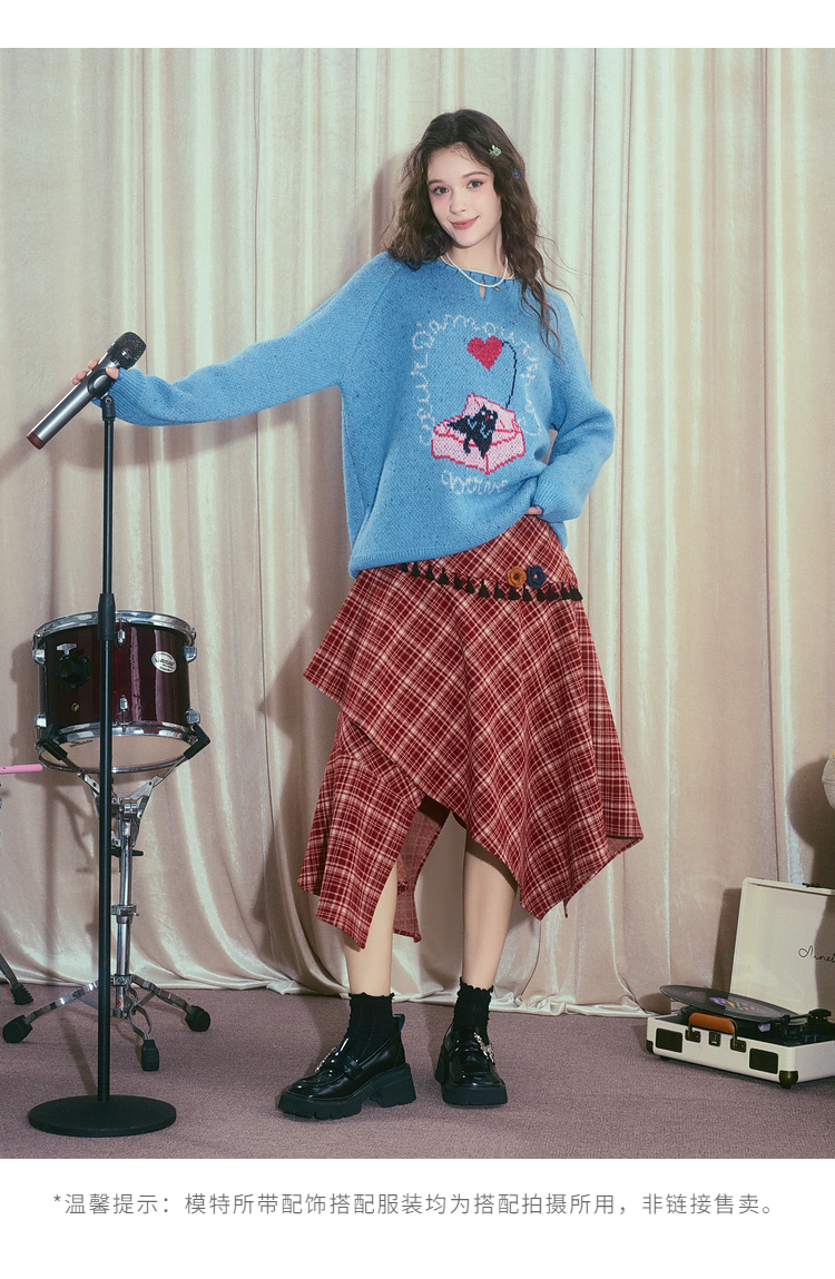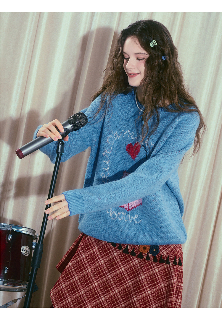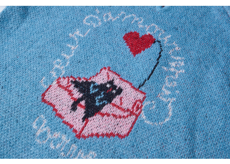 两三事 晴空絮语 2025冬季新款猫咪爱心图案镂空圆领套头毛衣女