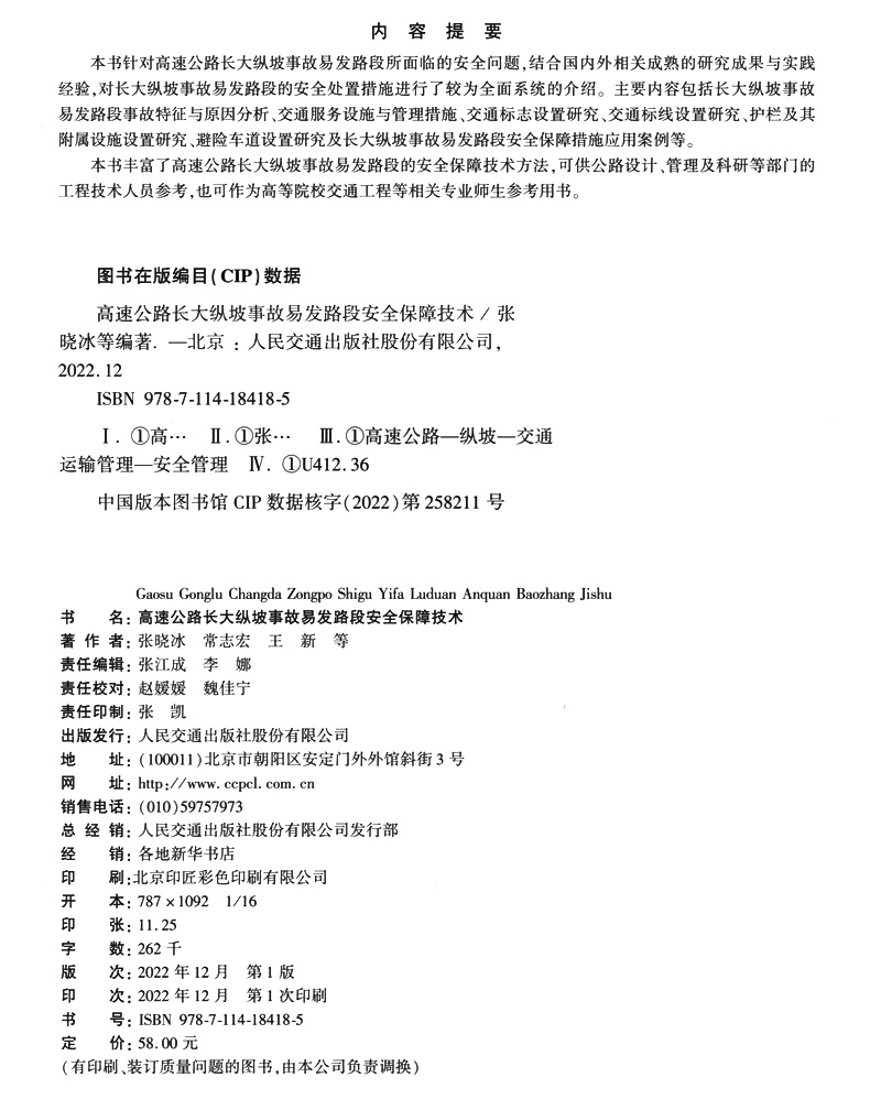 书名:高速公路长大纵坡事故易发路段安全保障技术