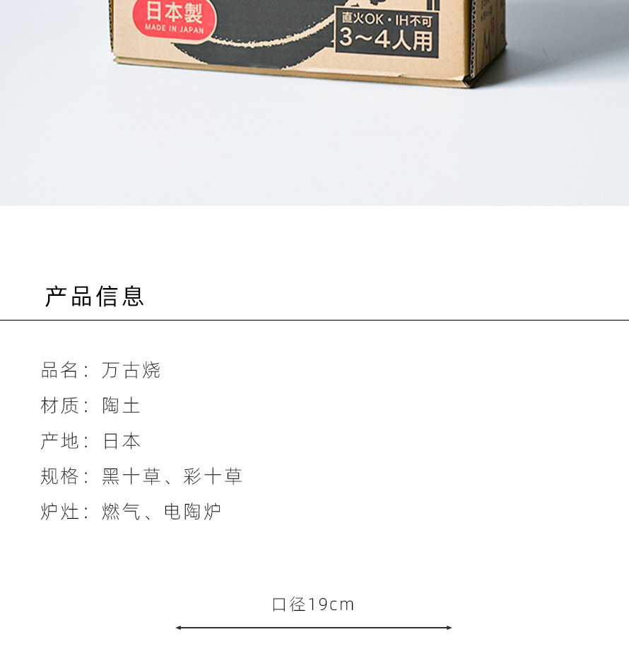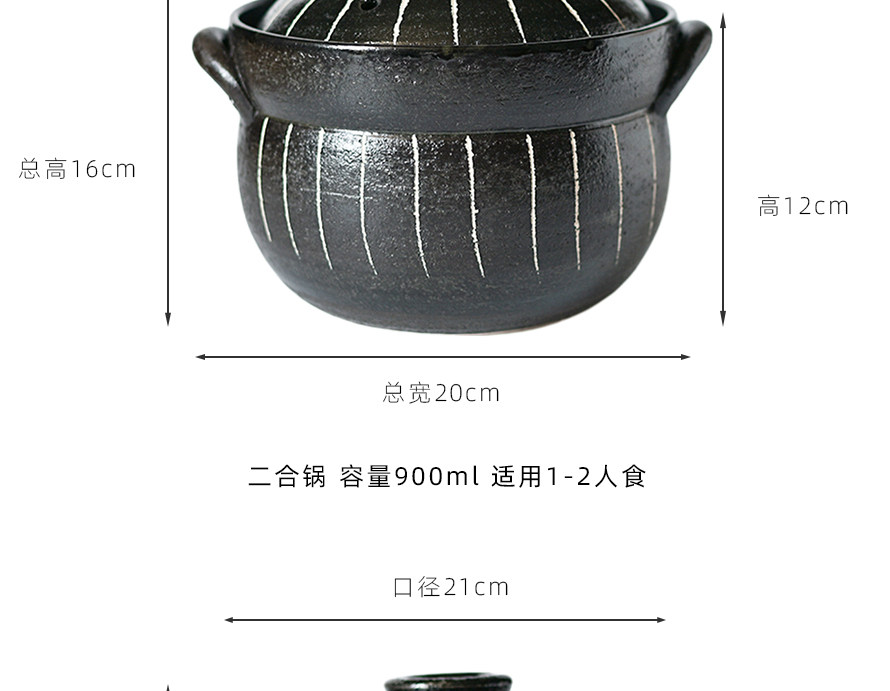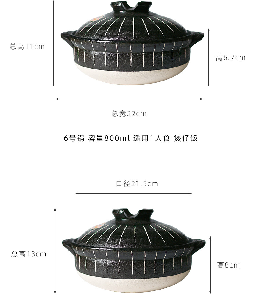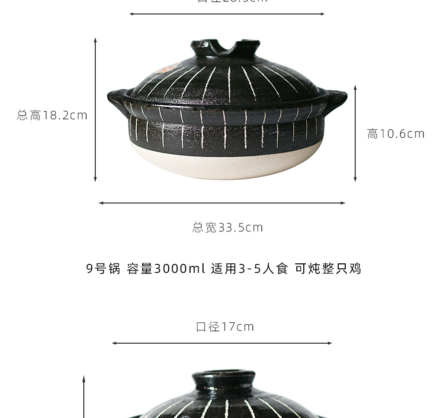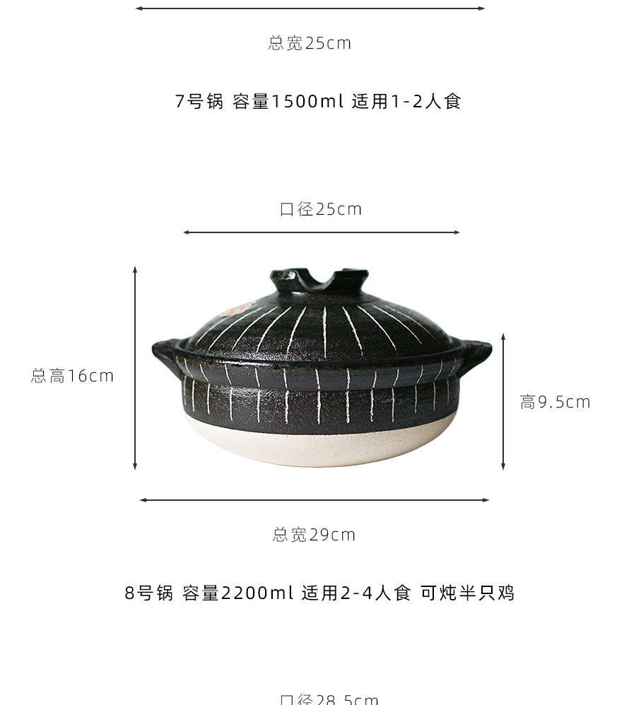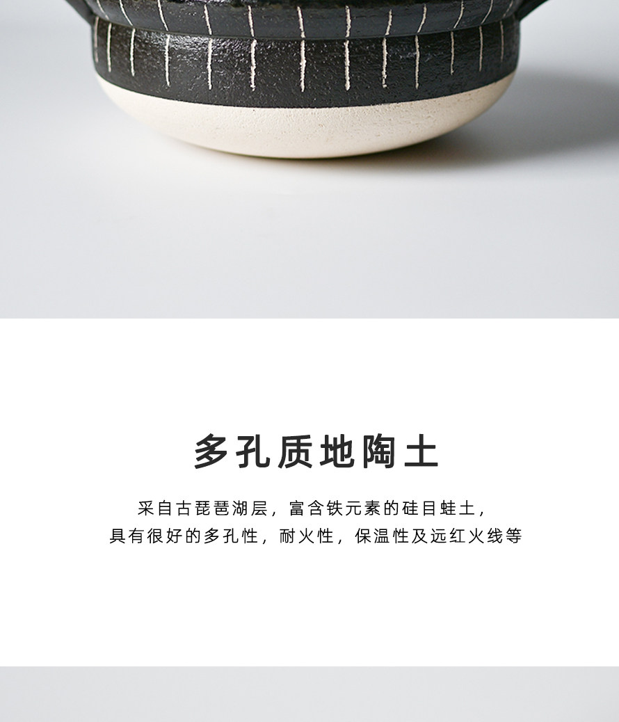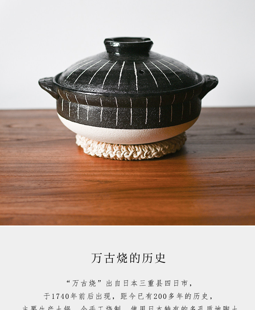 【日本进口万古烧砂锅】日本原装进口万古烧黑十草砂锅煲汤家用燃气日式炖锅煲仔饭土锅