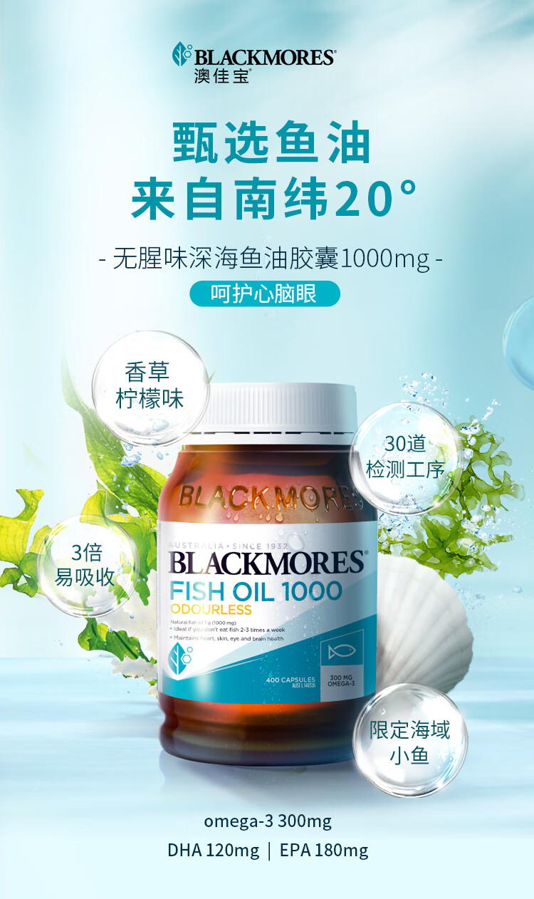 【海豚美购】Blackmores澳佳宝无腥味深海鱼油胶囊1000mg-400粒
