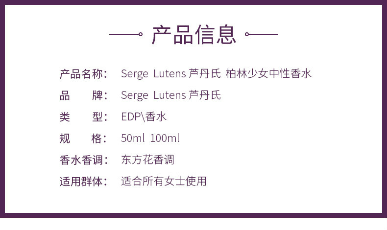 【保税仓】法国Serge Lutens 芦丹氏 柏林少女/孤女 柏林少女 100ML(效期至26年3月)