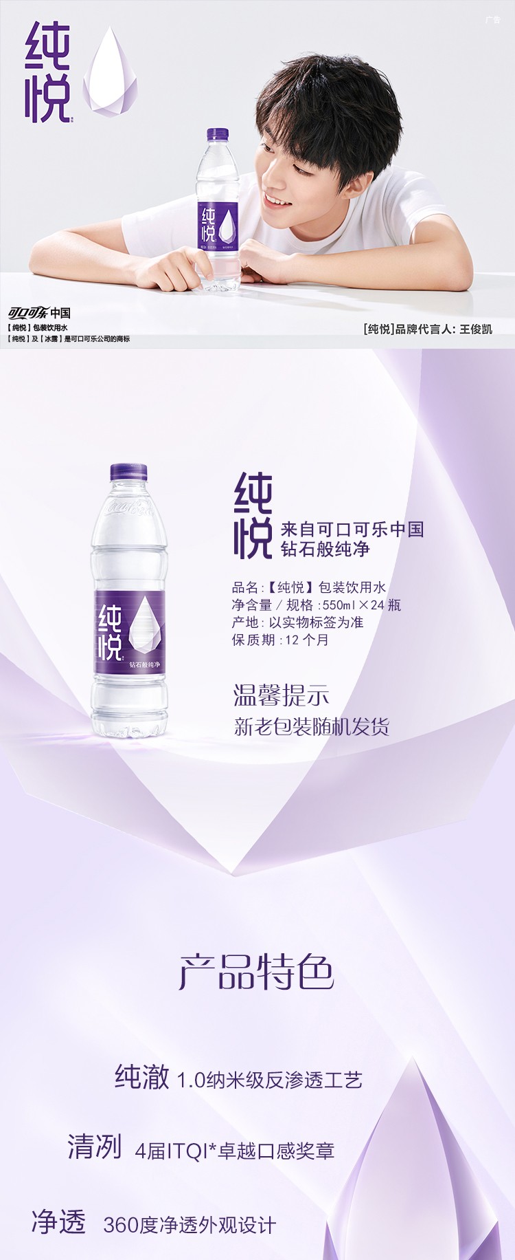 可口可乐纯悦550ml*12瓶装整箱饮用水纯净水饮料矿泉水瓶装水包邮