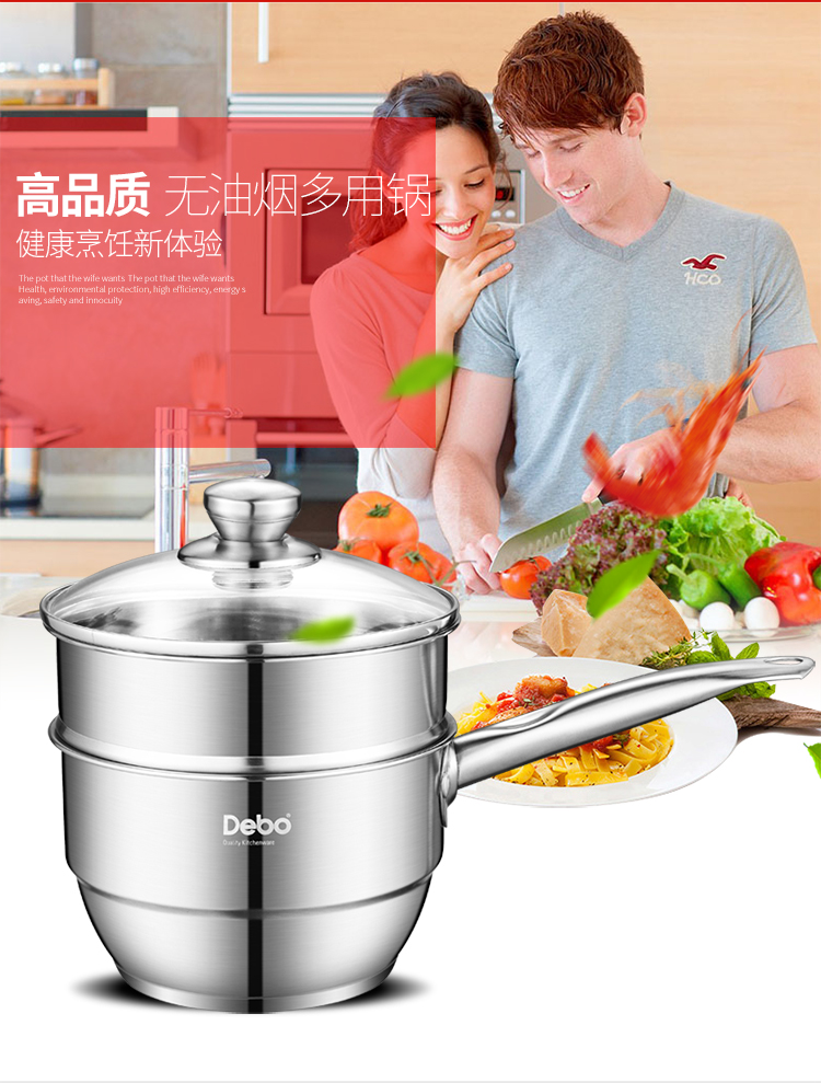 Debo德铂-卡贝尔多用锅1.6L 蒸炖煮一锅多用(配玻璃锅盖、蒸片、蒸格)