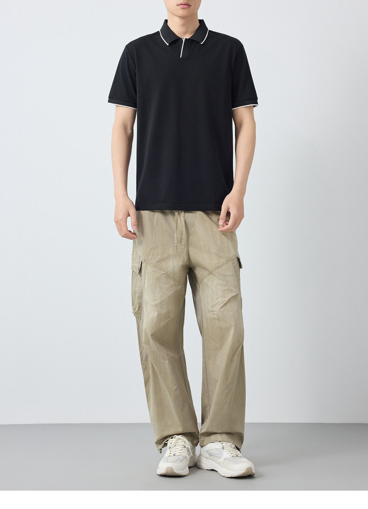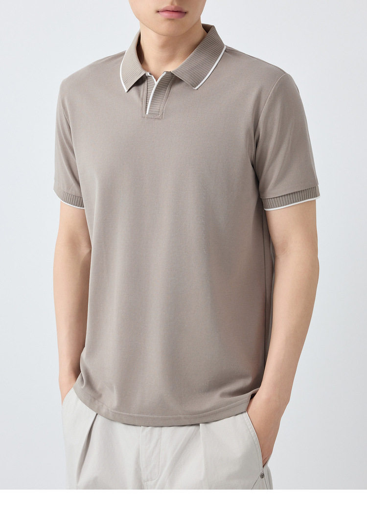 墨麦客男装高智通勤撞色Polo衫2026春季新款小V领男士polo衫75269