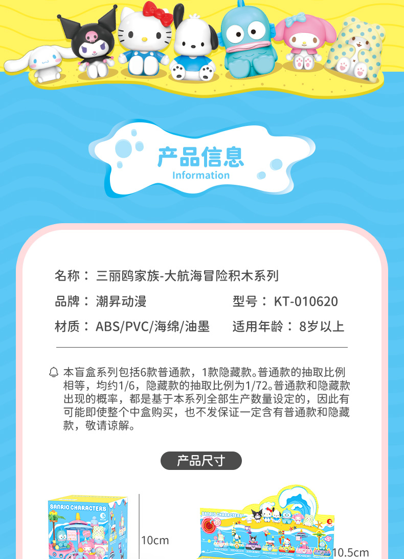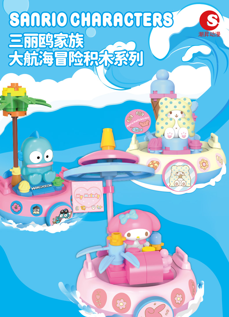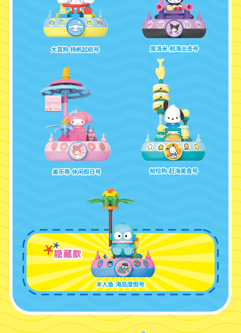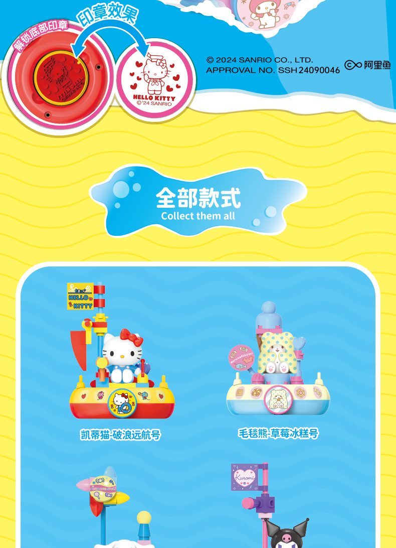 凯蒂猫三丽鸥航海积木系列印章潮玩美乐蒂库洛米盖章周边摆件盲盒潮昇