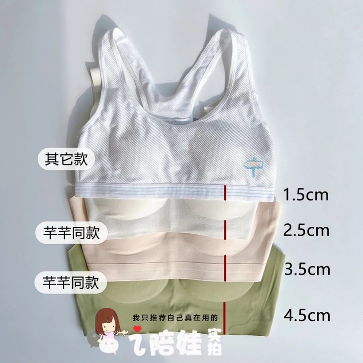 还有现在孩子发育的快,它家运动款和基础款,这次还出了PLUS版,比常规款大一圈,杯垫弧度和面积更大,胸垫相应也会厚一点,这次100斤以上的女孩都照顾到了。