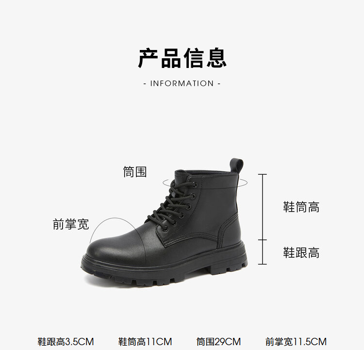 西遇马丁靴男冬季新款复古潮男英伦风短靴厚底增高工装靴22125655