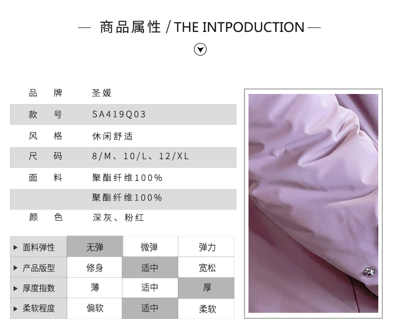 SAINT L’UCK/圣媛女装 时尚休闲连帽棉服外套SA419Q03
