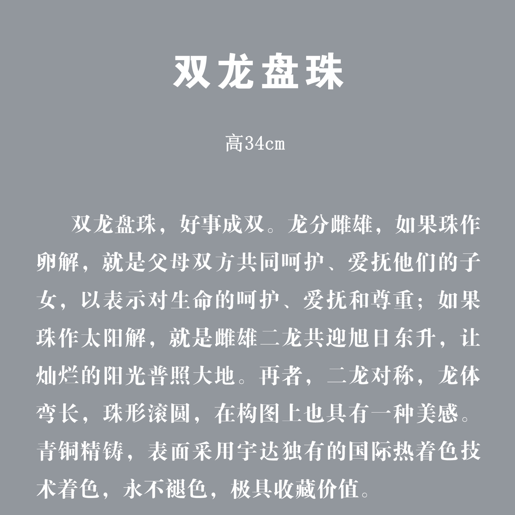 宇达青铜摆件 十二生肖龙《双龙盘珠》家居 手工艺品 装饰摆件 高34cm