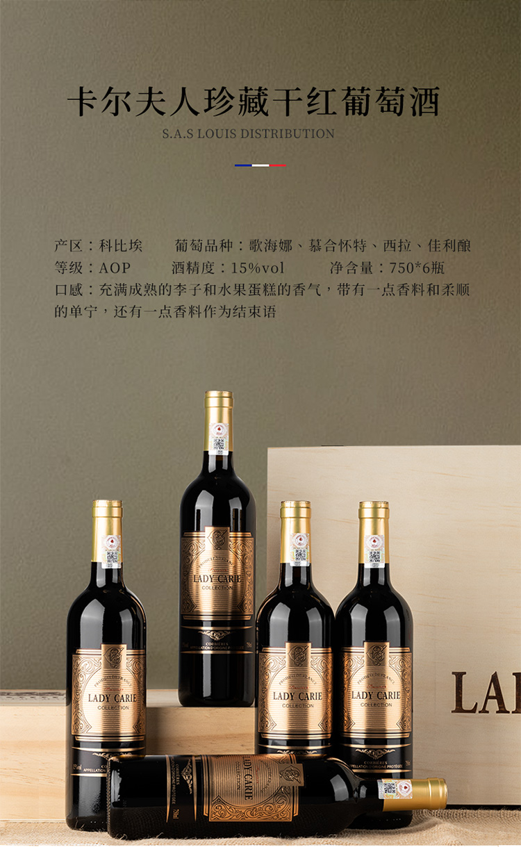 【科比埃15度AOP佳酿】卡尔夫人珍藏干红葡萄酒 法国 15%vol