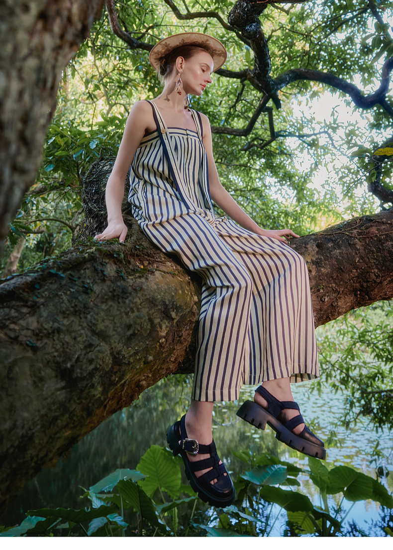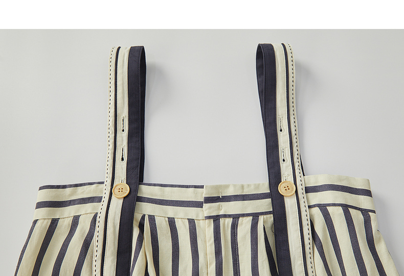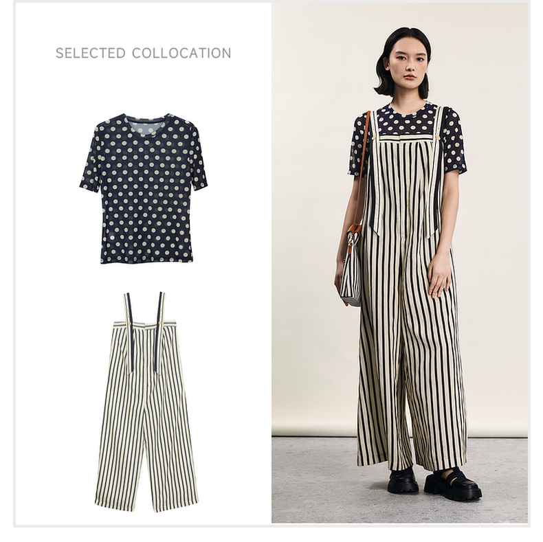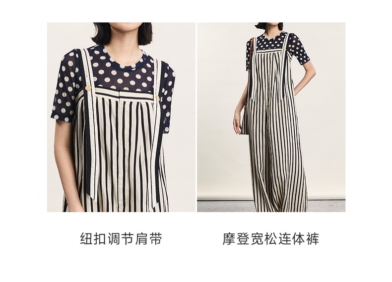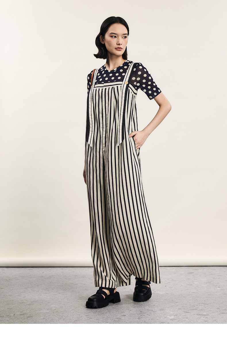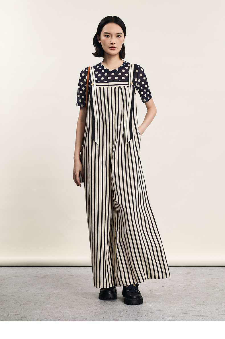 谜底背带裤长裤女2024夏季新品复古时髦黑白条纹阔腿裤242MK0629