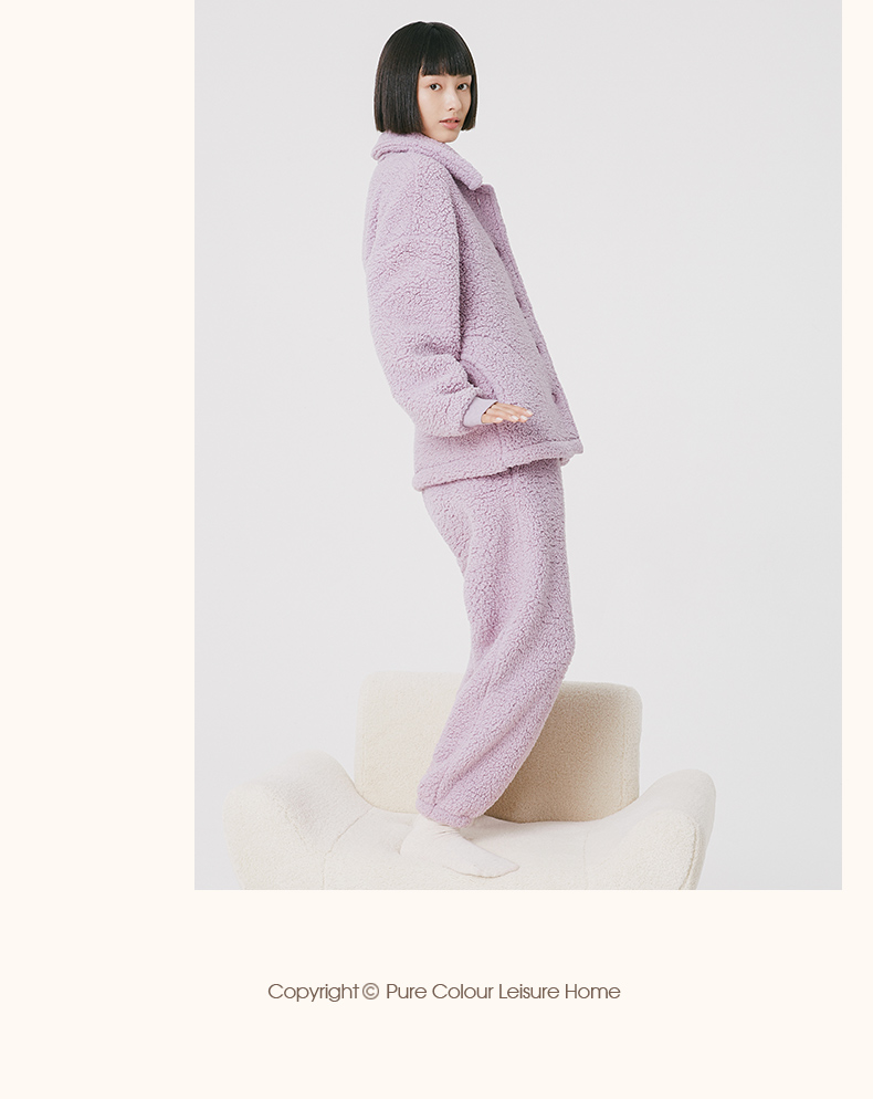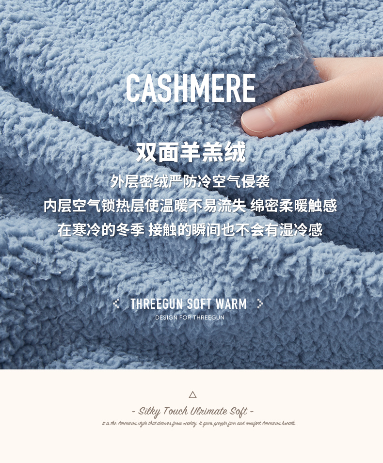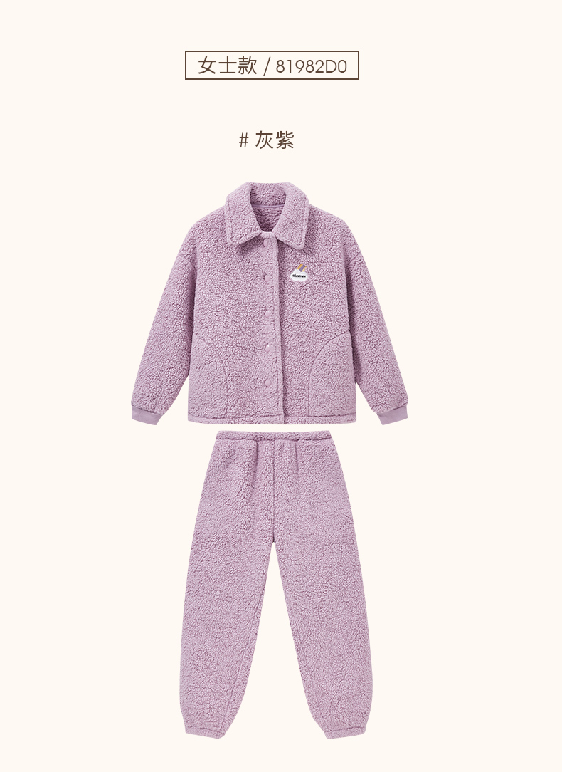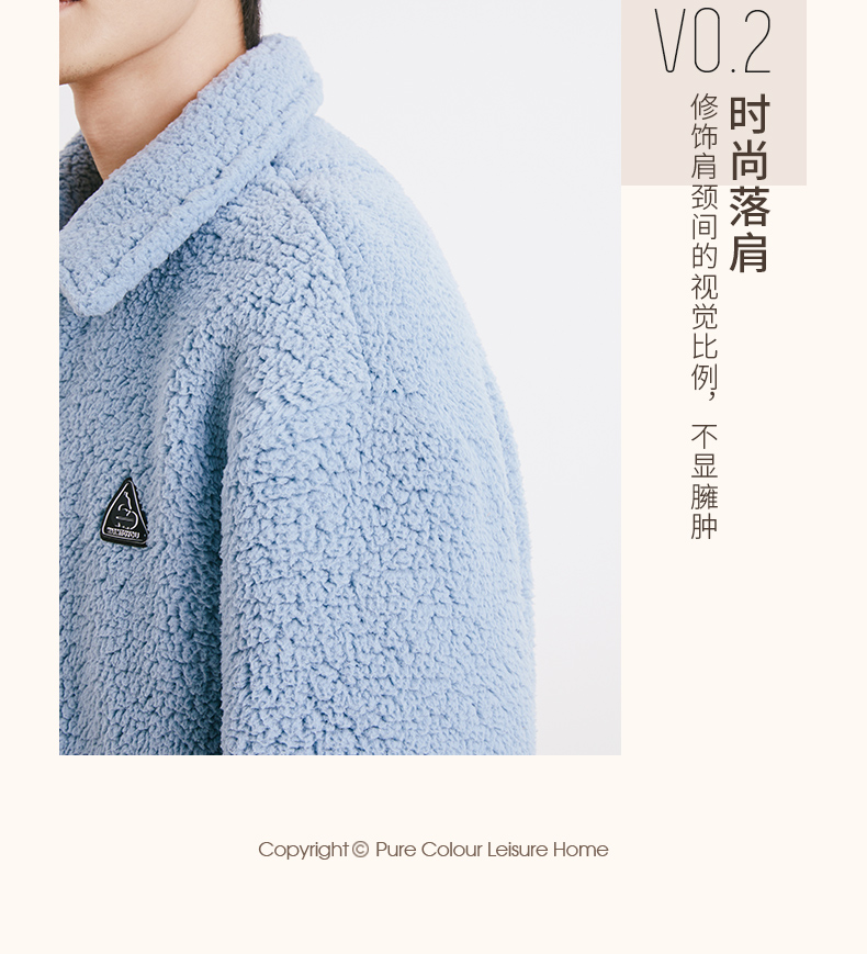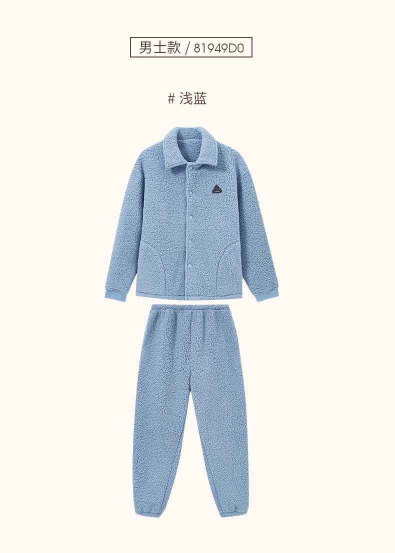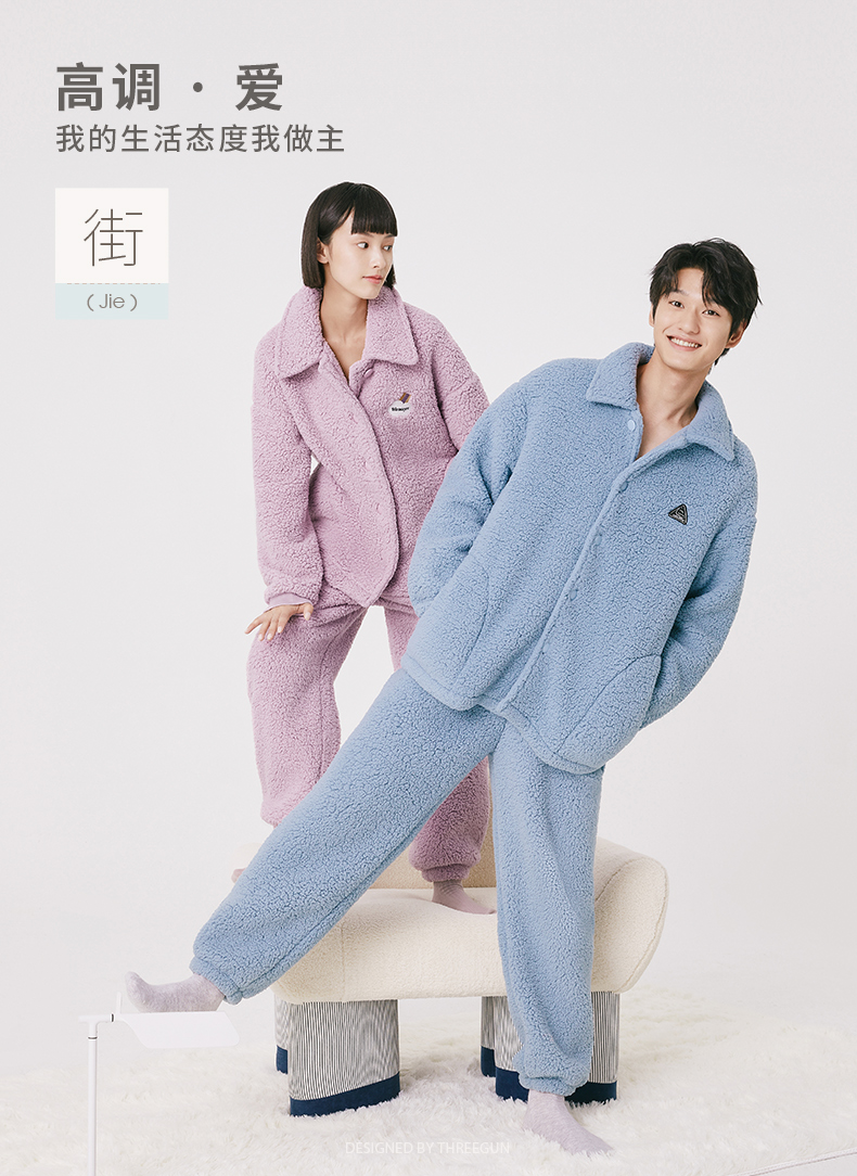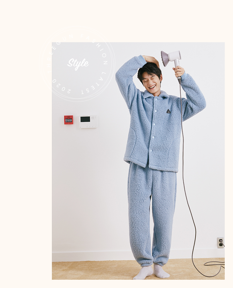 Threegun三枪 羊羔绒翻领开襟男士家居套-81949D011