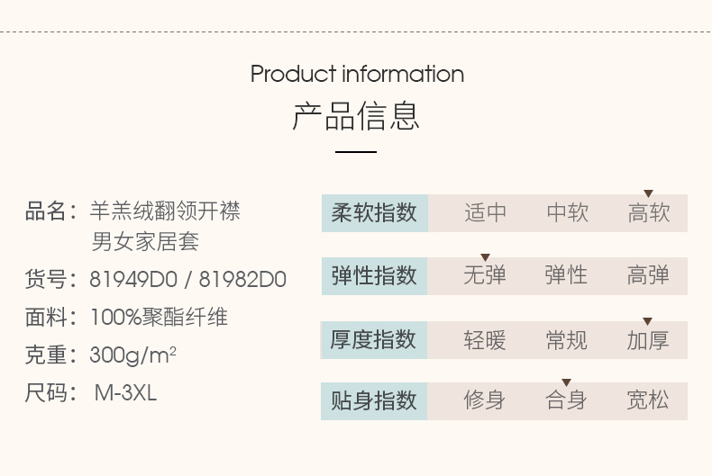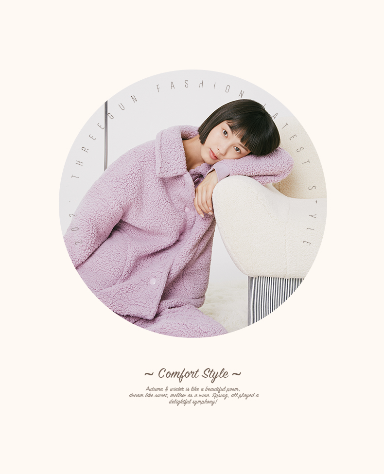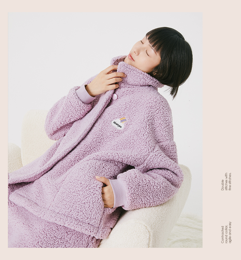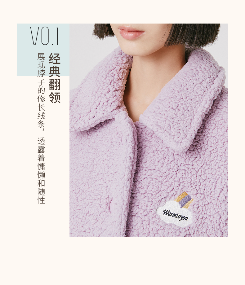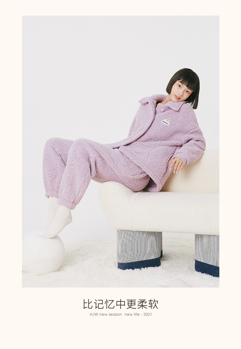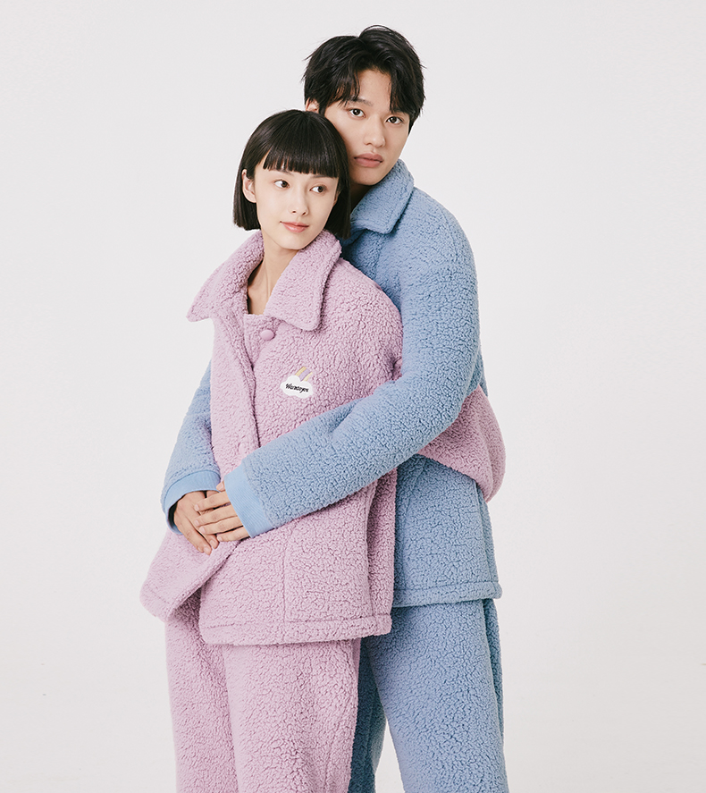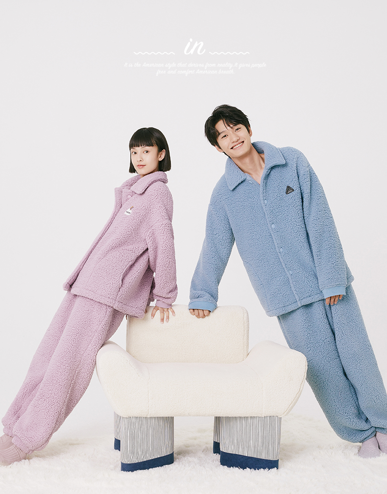 Threegun三枪 羊羔绒翻领开襟男士家居套-81949D011