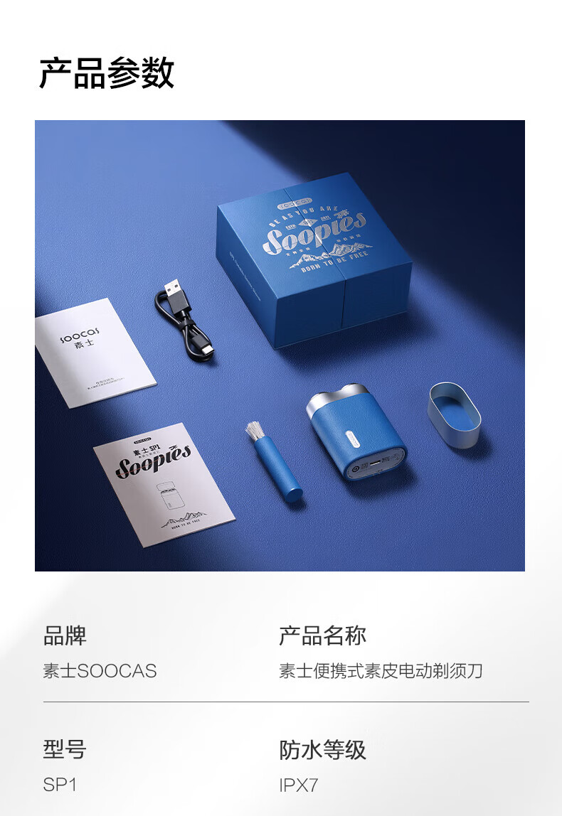 【自营】素士SOOCAS 迷你剃须刀 便携小巧胡须刀 电动全身水洗刮胡刀干湿双剃SP1 送男友父亲礼物