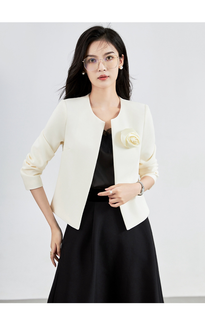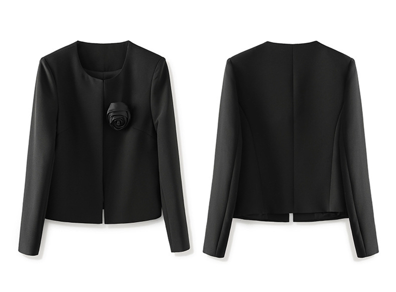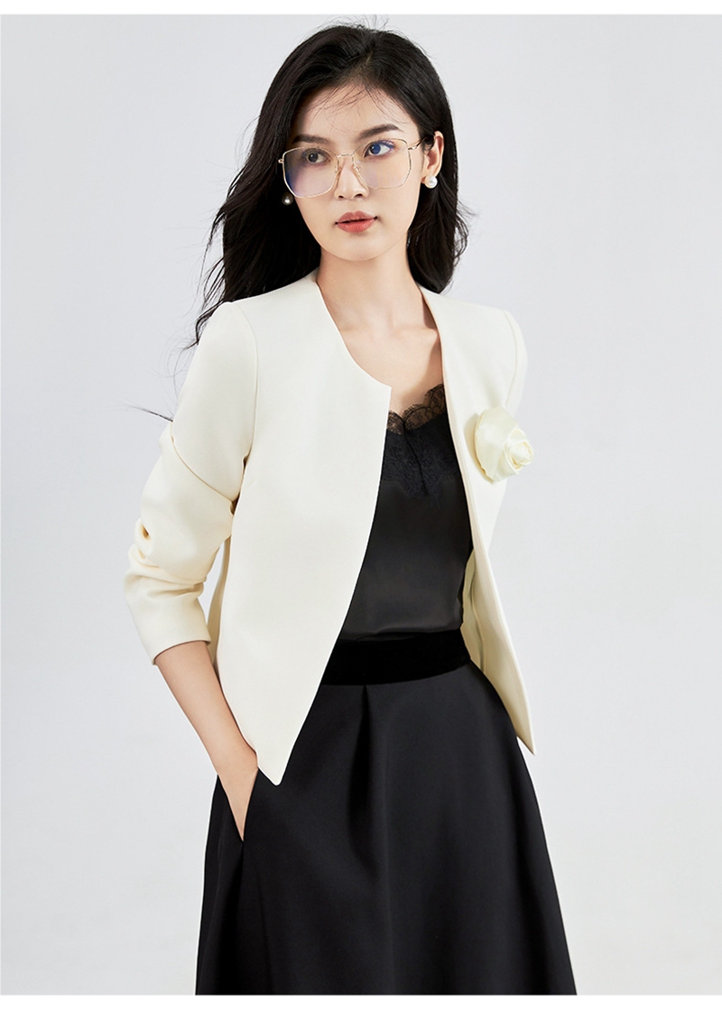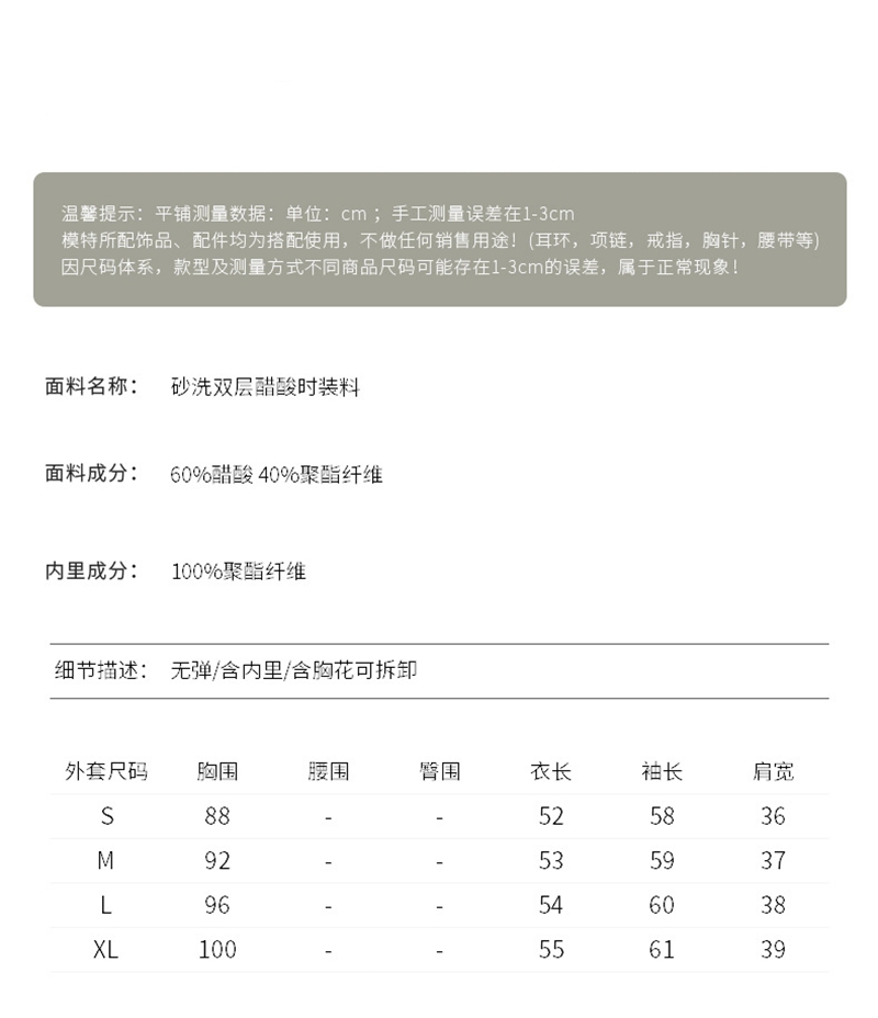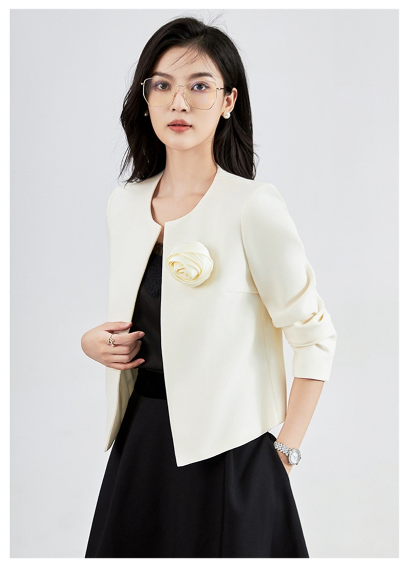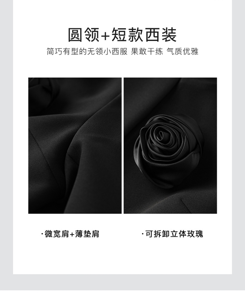 轻奢简约双层醋酸圆领长袖小西装短外套