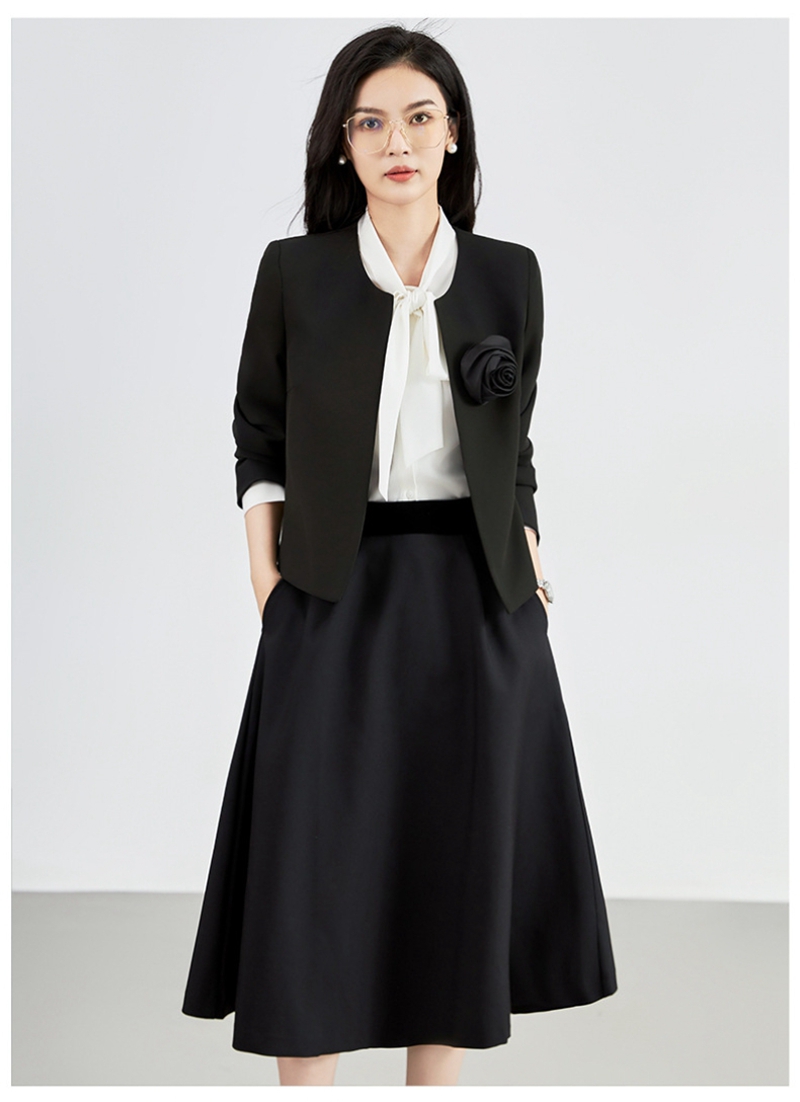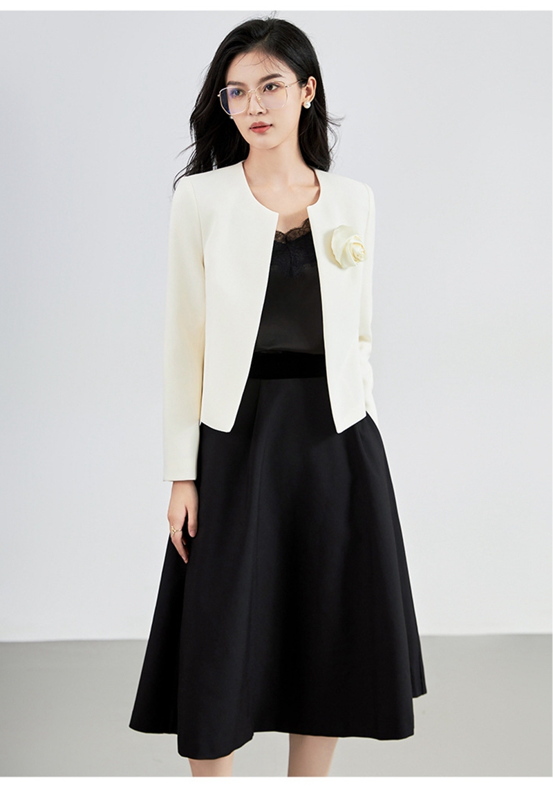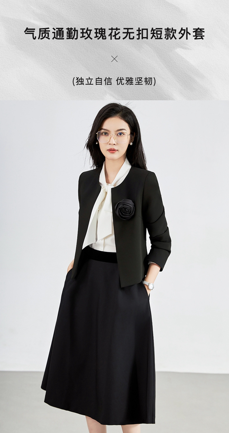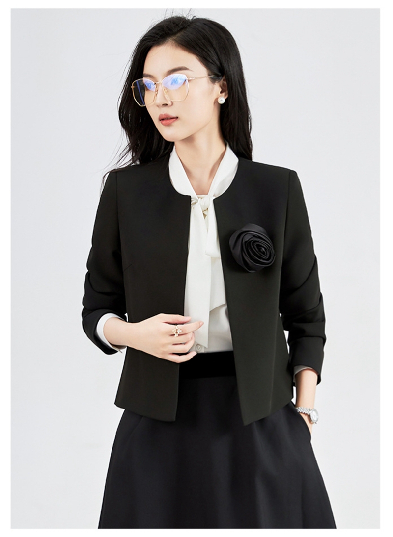 轻奢简约双层醋酸圆领长袖小西装短外套