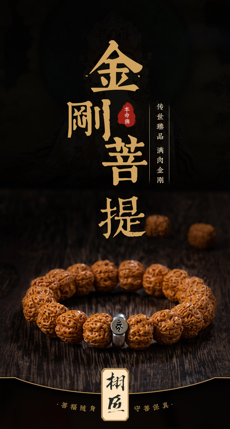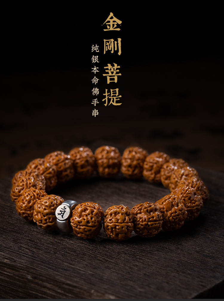【树神小金刚菩提籽】s925银手串 盘文玩核桃 男士单圈念珠手把件 父亲节礼物