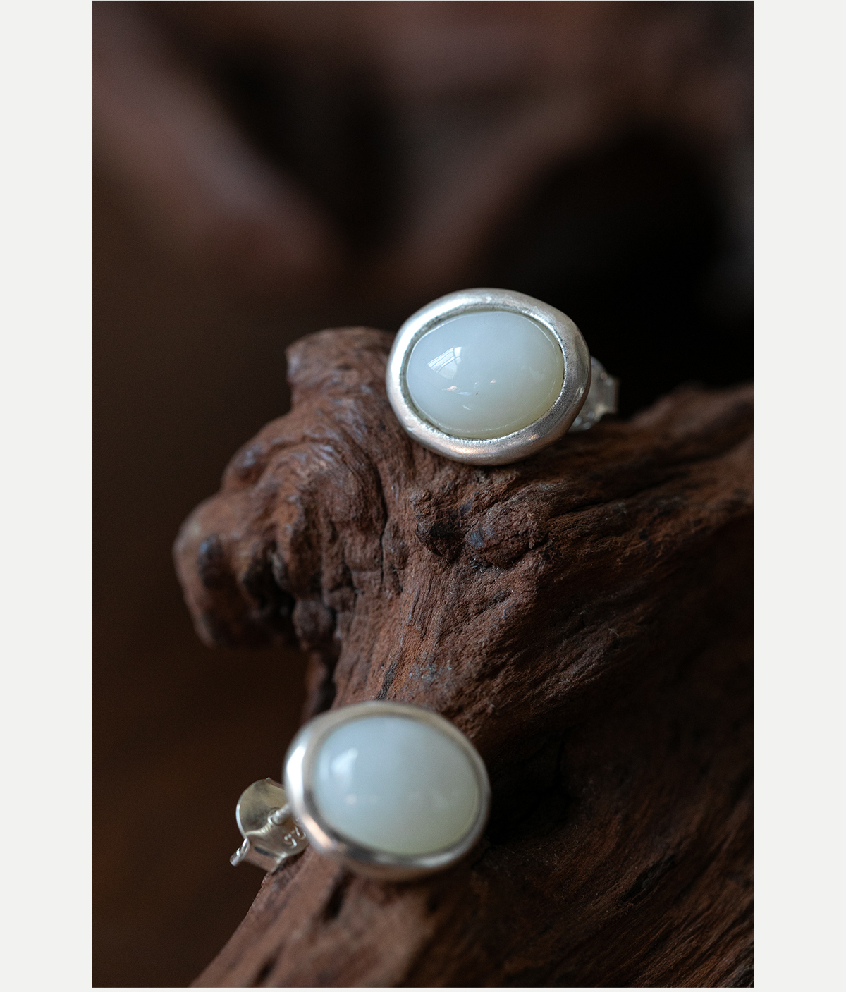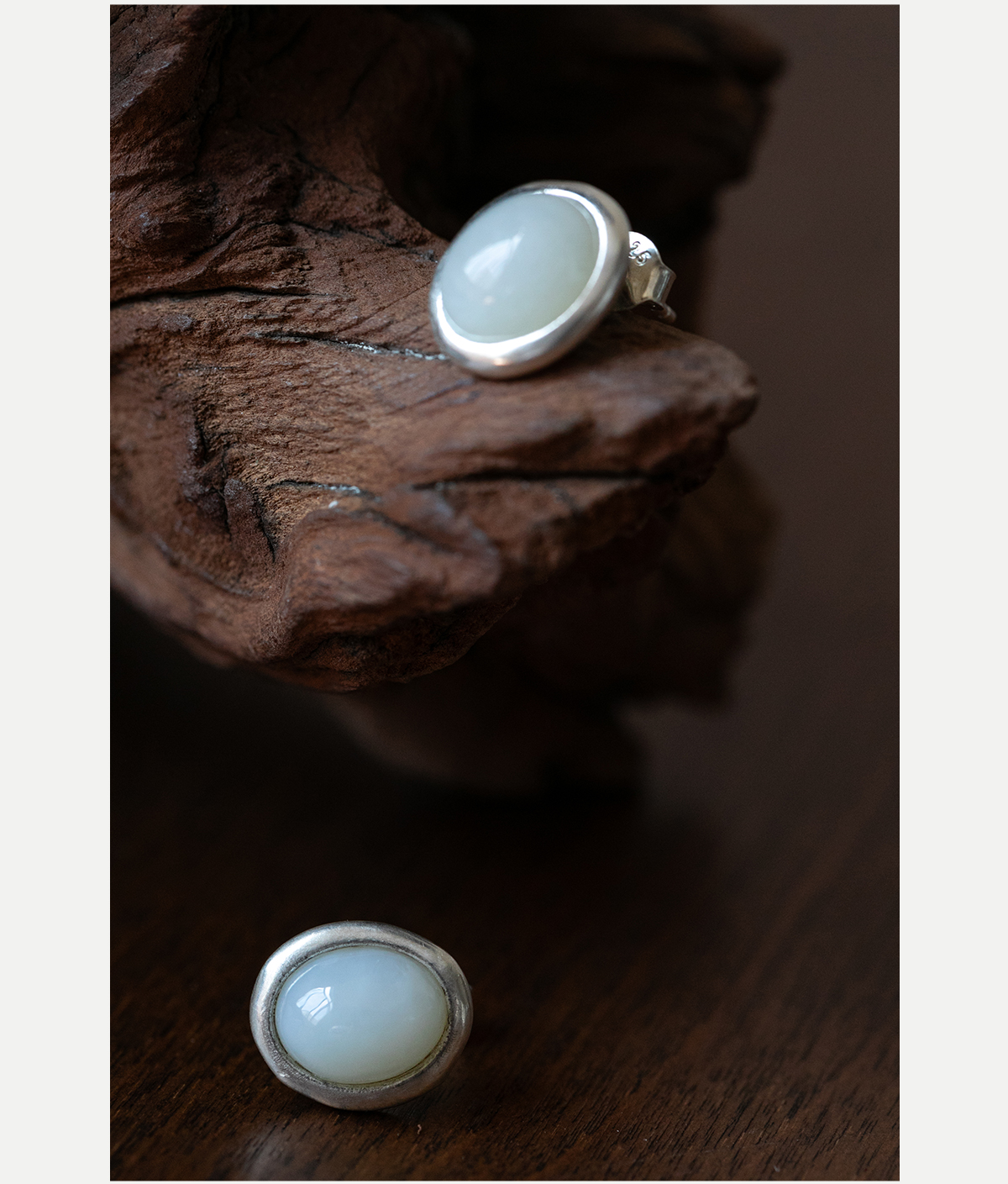 牧衣游 S925银禾田白玉耳环百搭气质 檬洮【不支持会员折】