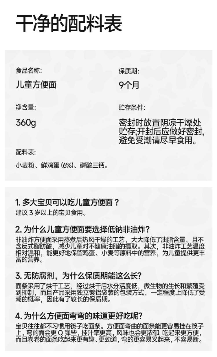 【主辅食】高钙高营养非油炸儿童方便面360g(60g*6),送婴幼儿辅食食谱