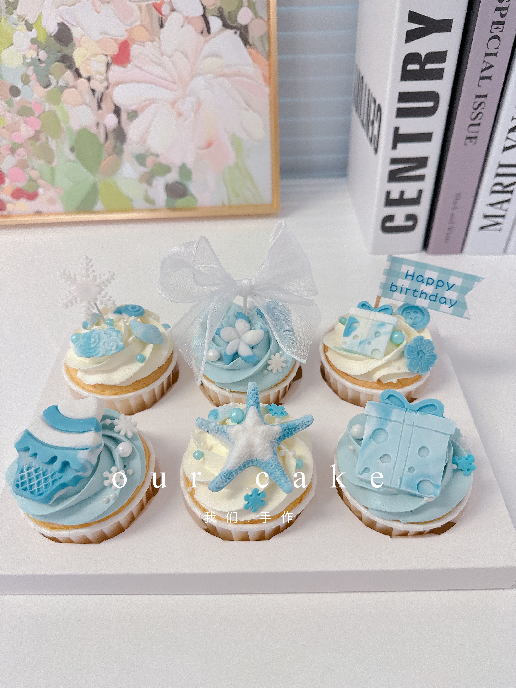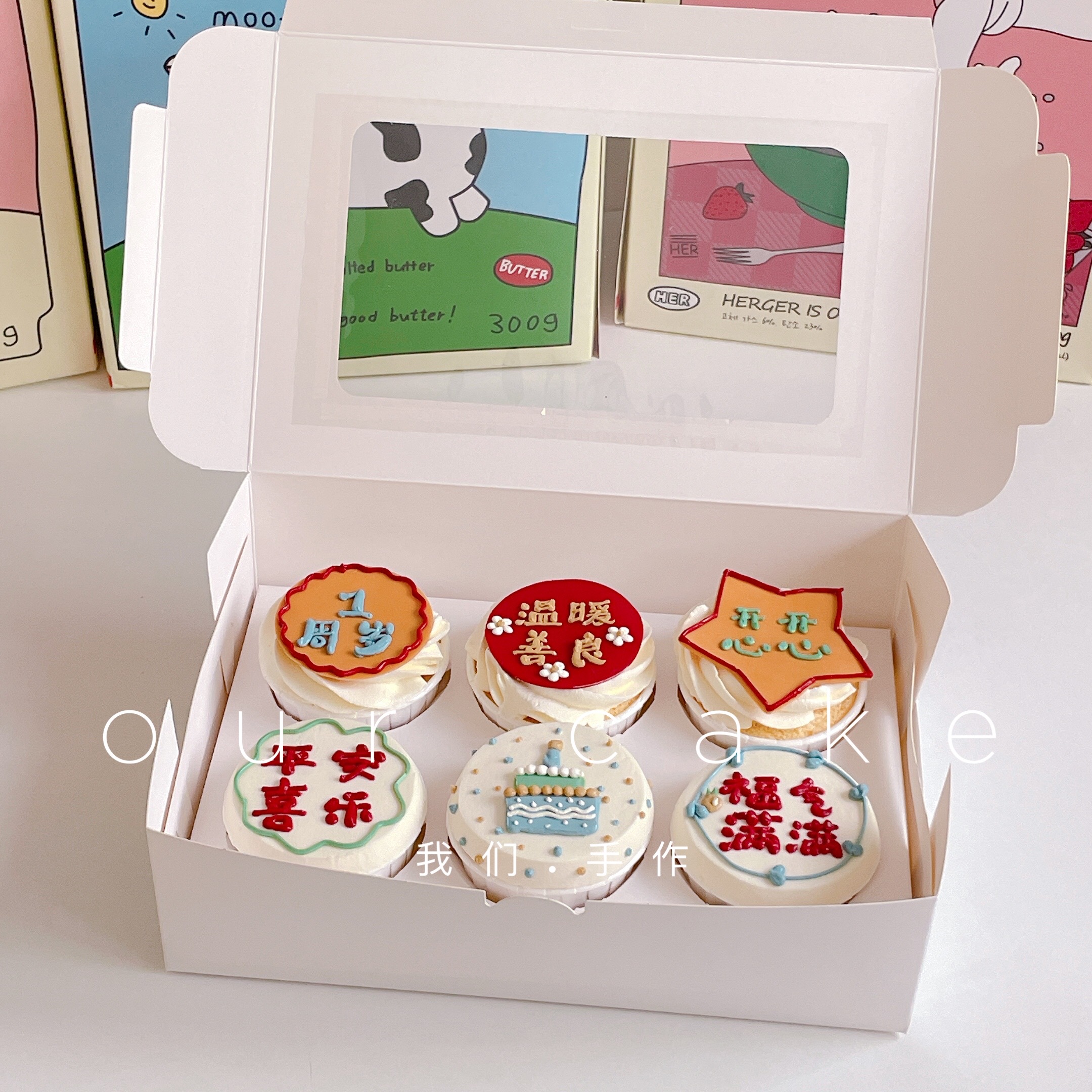 翻糖装饰可改字杯子蛋糕-无夹心内有卡仕达酱-低糖无添加