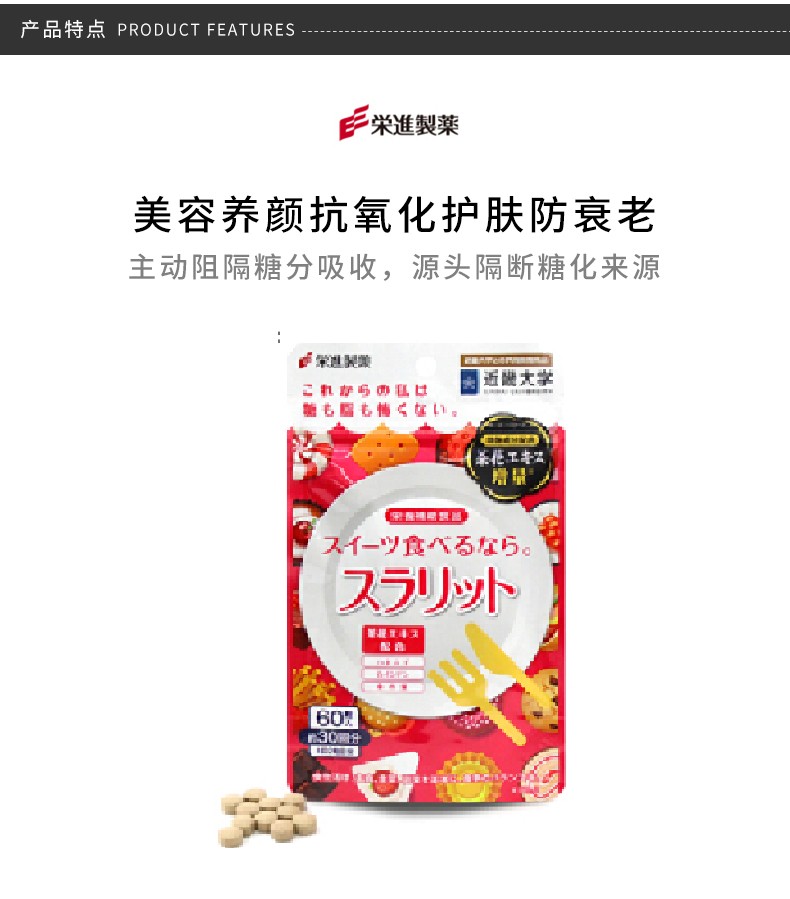 抑制糖分吸收,提高肌肤质!糖化——导致皮肤松弛,肌肤暗黄,爆痘,出现皱纹的元凶!荣进抗糖丸,日本版pola!