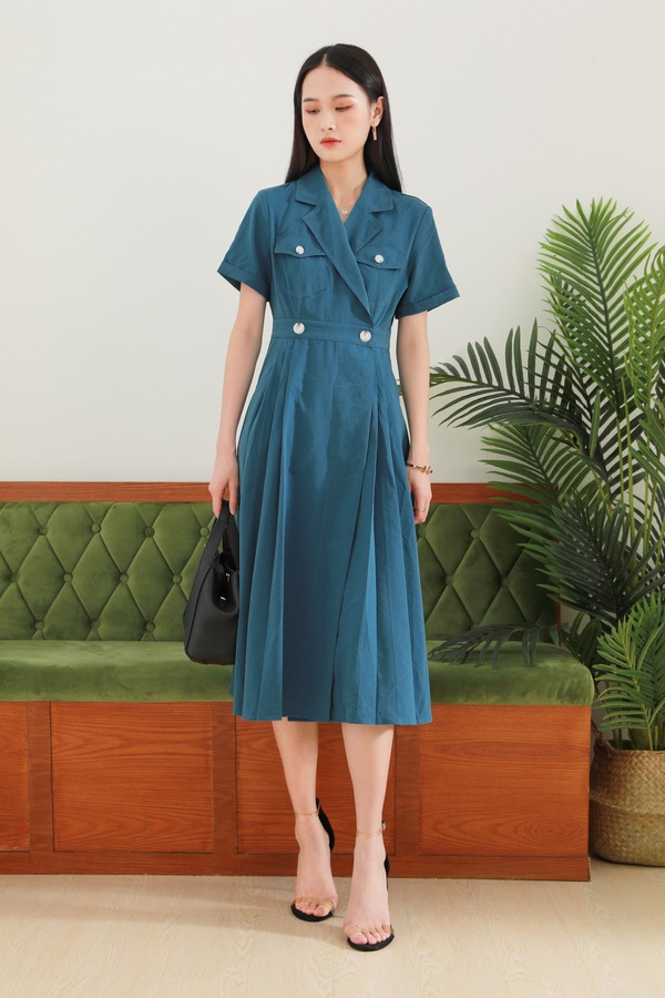 amadella 口袋饰西装领高腰连衣裙 13148