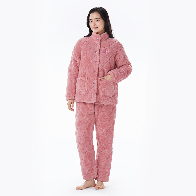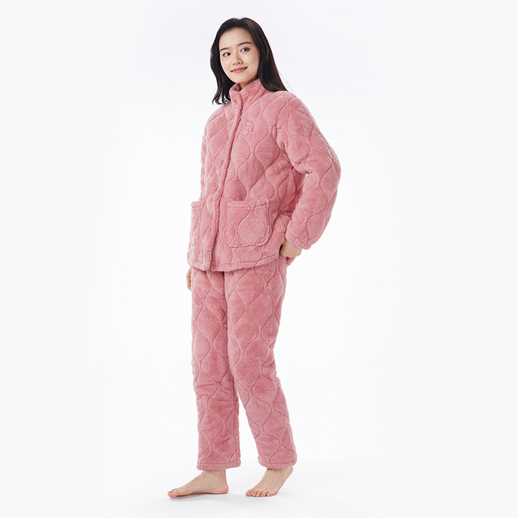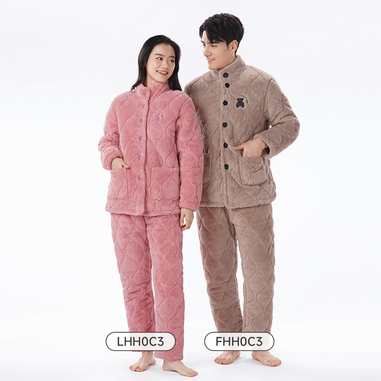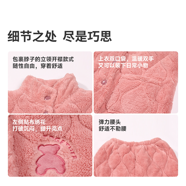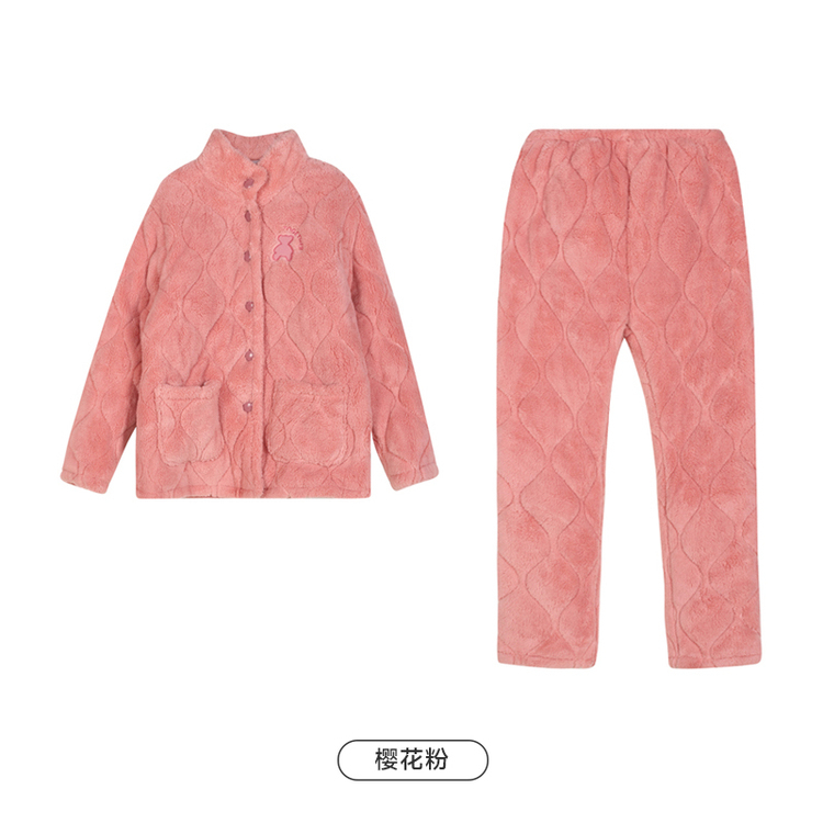 都市丽人睡衣长毛绒夹棉女士家居服长袖长裤加厚夹棉套装LHH0C3