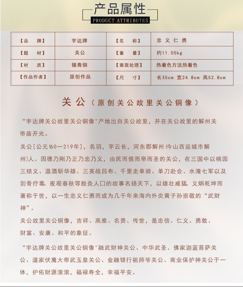 宇达青铜全铜摆件《忠义仁勇》家居饰品 礼品 铜工艺品 关公摆件