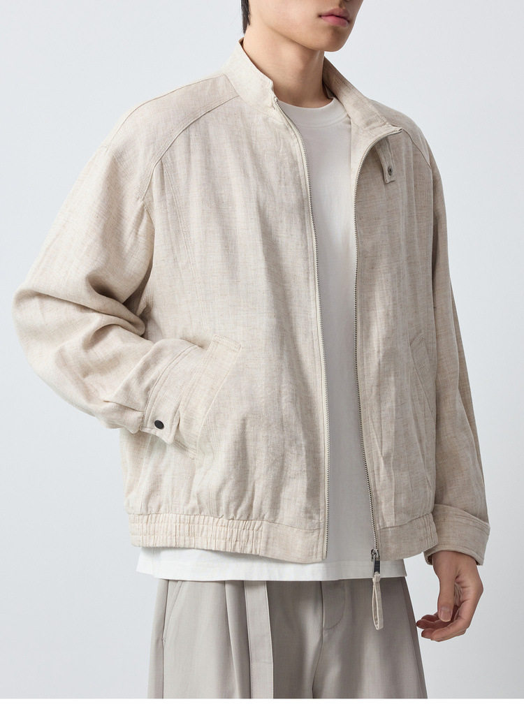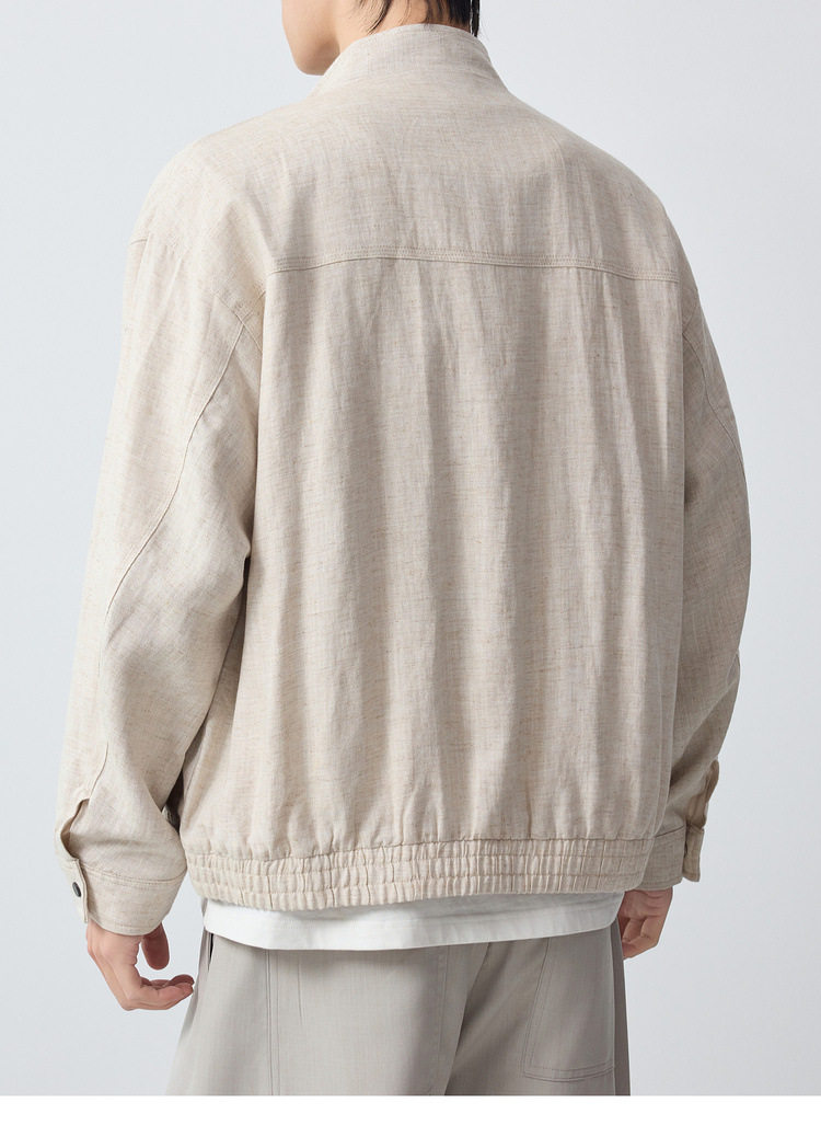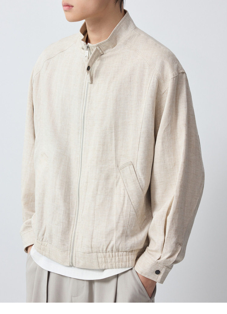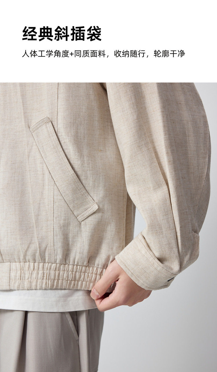 墨麦客男装高智通勤立领男士夹克2026春新款亚麻混纺外套男81568.