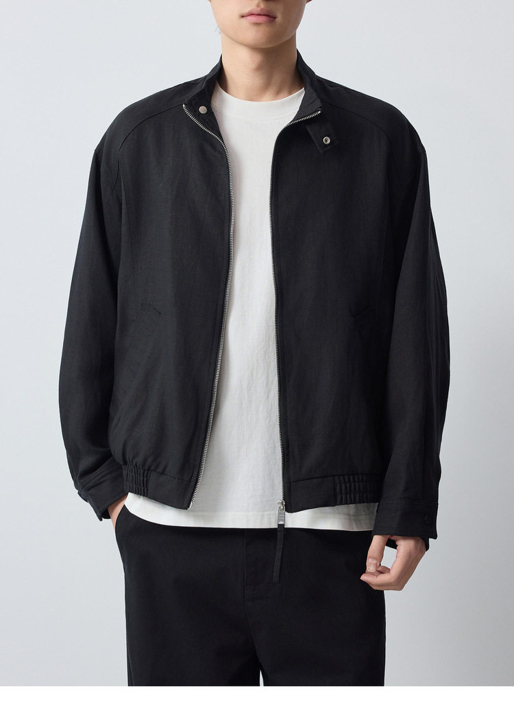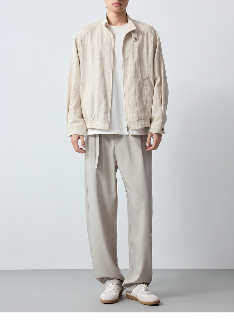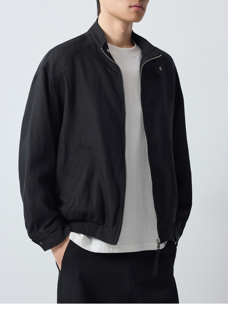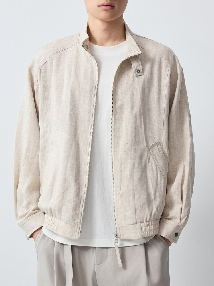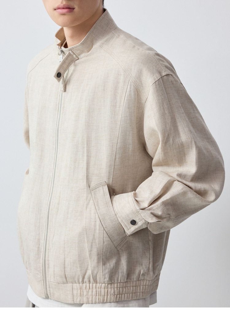 墨麦客男装高智通勤立领男士夹克2026春新款亚麻混纺外套男81568.