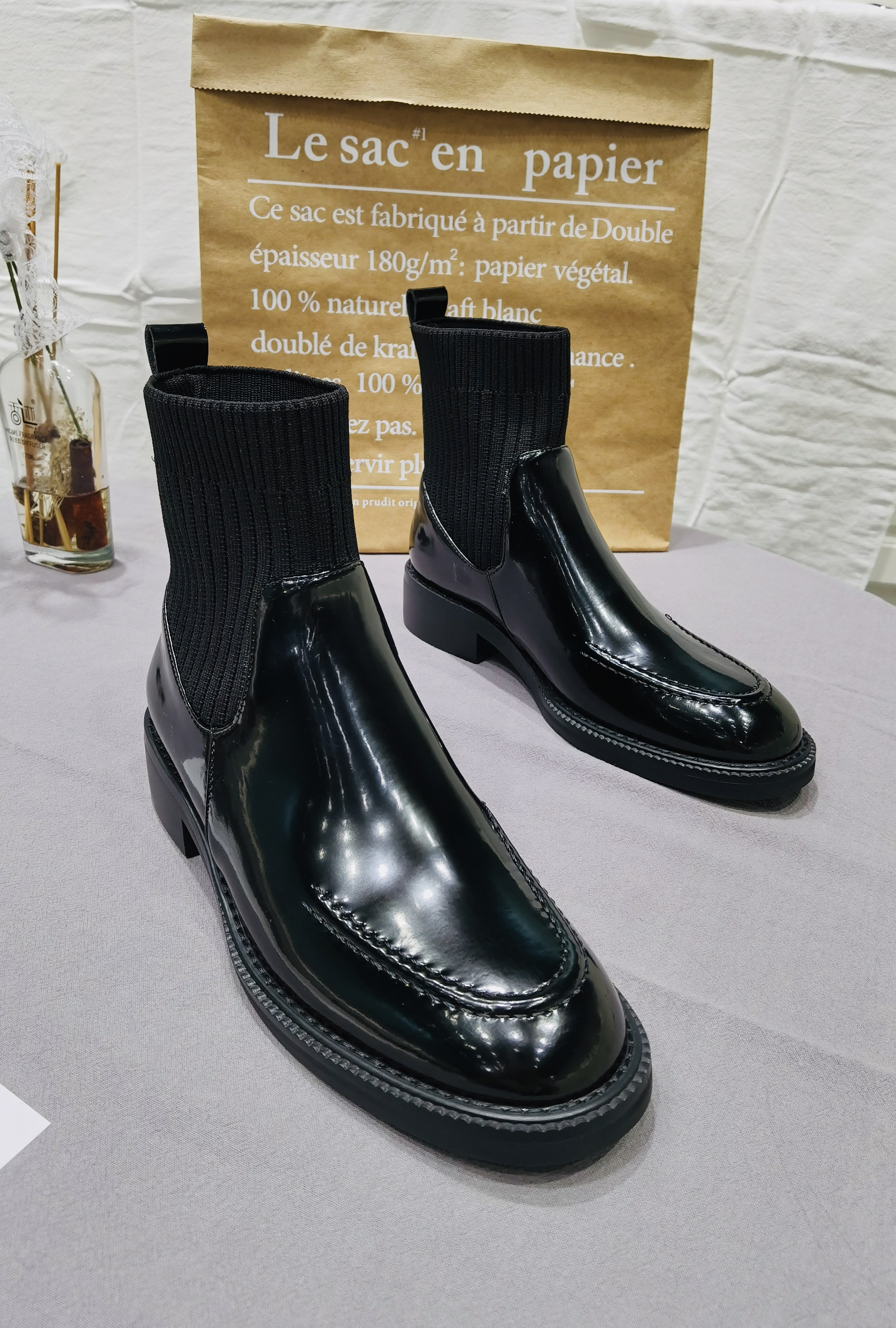 产品卖点:英伦风小皮鞋!鞋面材质开边珠牛皮,内里头层猪皮!鞋子采用皮料➕编织工艺!非常简单大牌,鞋筒采用飞织工艺,弹力非常好,胖瘦均可穿,包裹性非常强,超级显脚踝细。鞋面是开边珠牛皮,手工走线,高级感立马up!跟高4厘米。走路不累脚,任何搭配都OK。极简主义,非常洋气!
