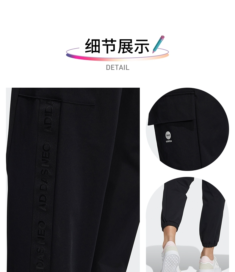 adidas neo阿迪达斯女运动休闲春季新款工装长裤HE4484