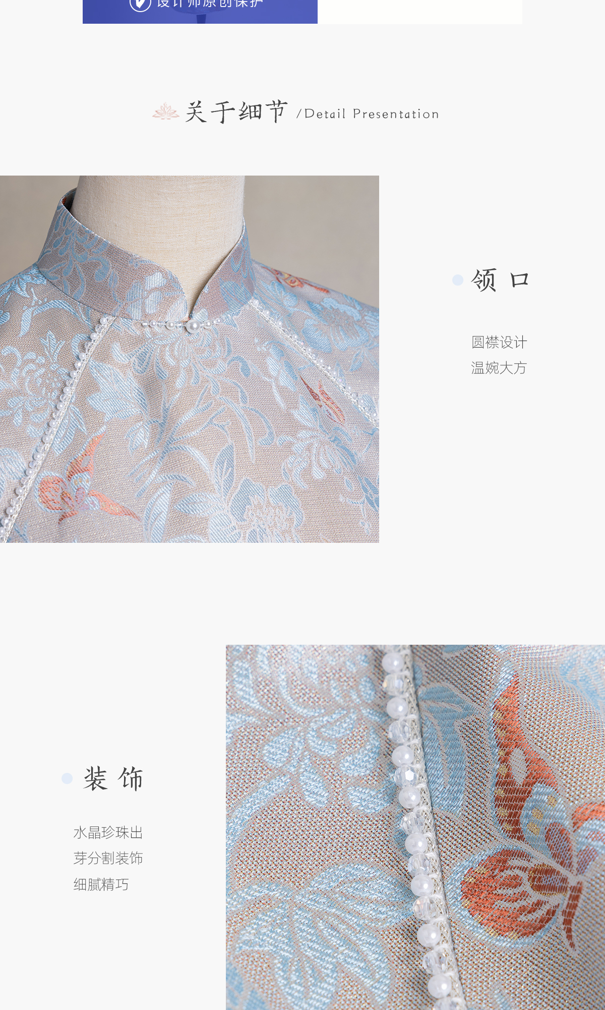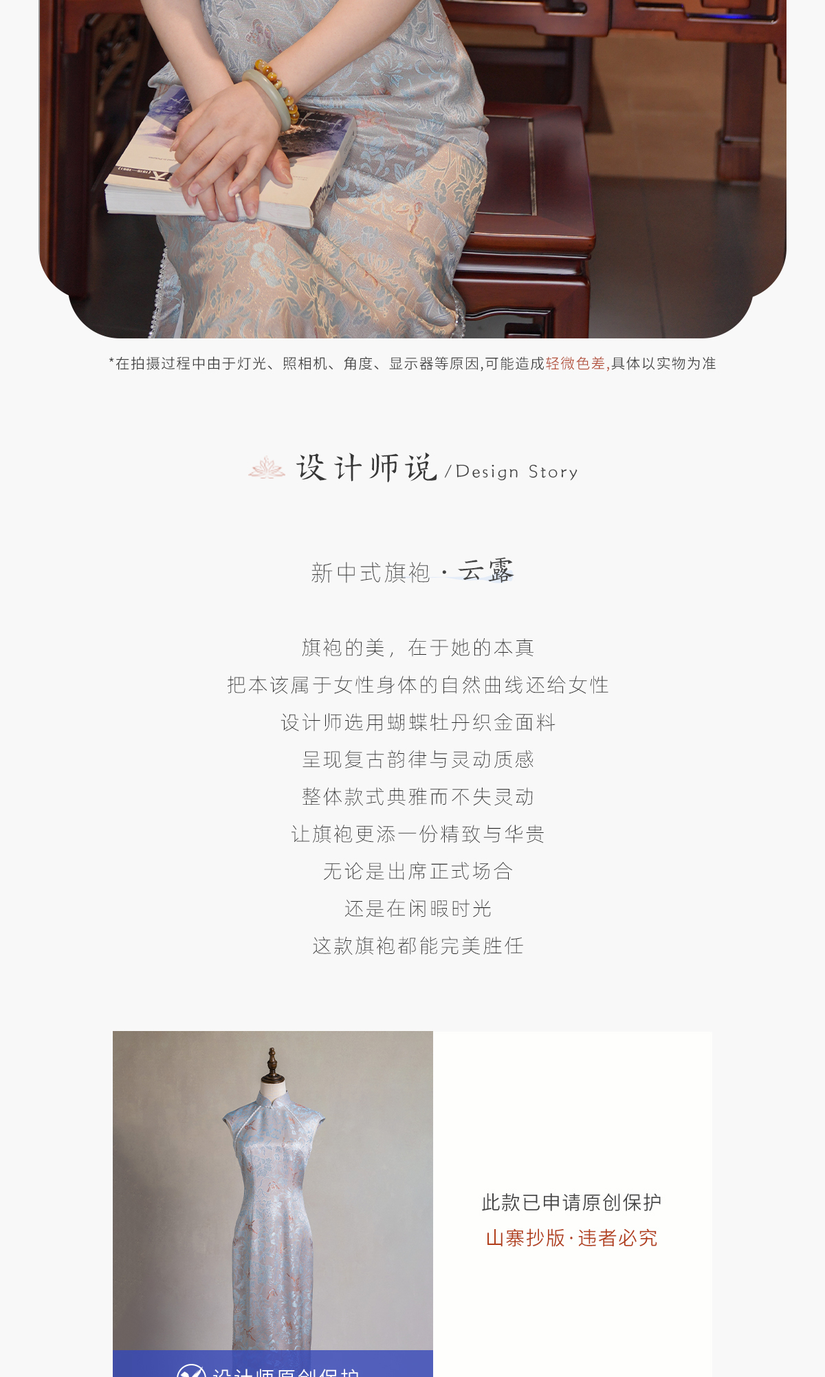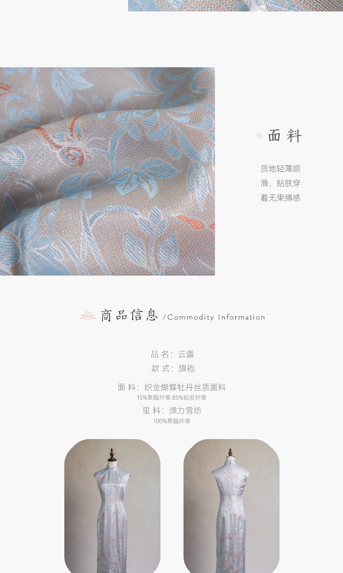 荷言GL 云露 仙子同款织金蝴蝶牡丹仿罗丝质旗袍
