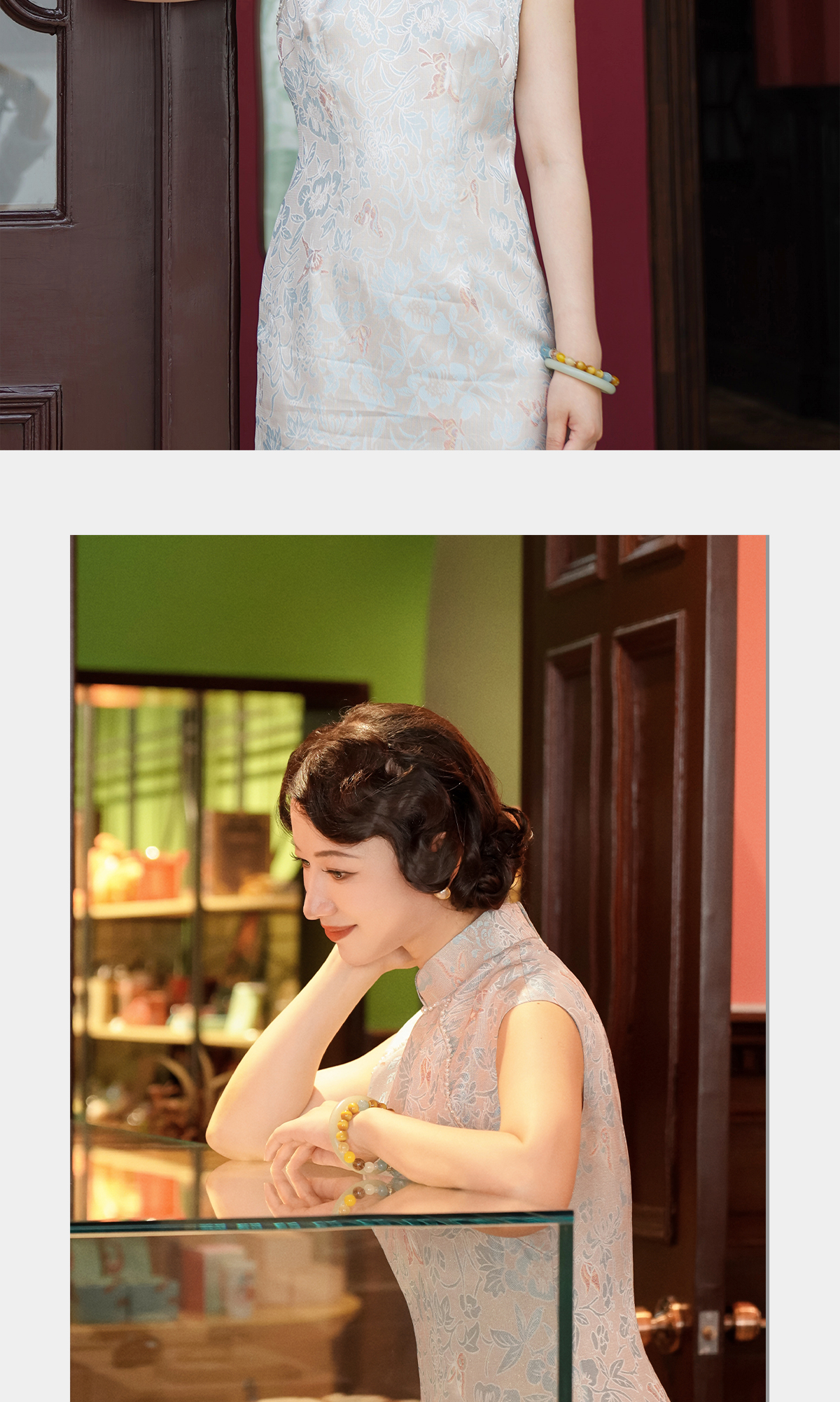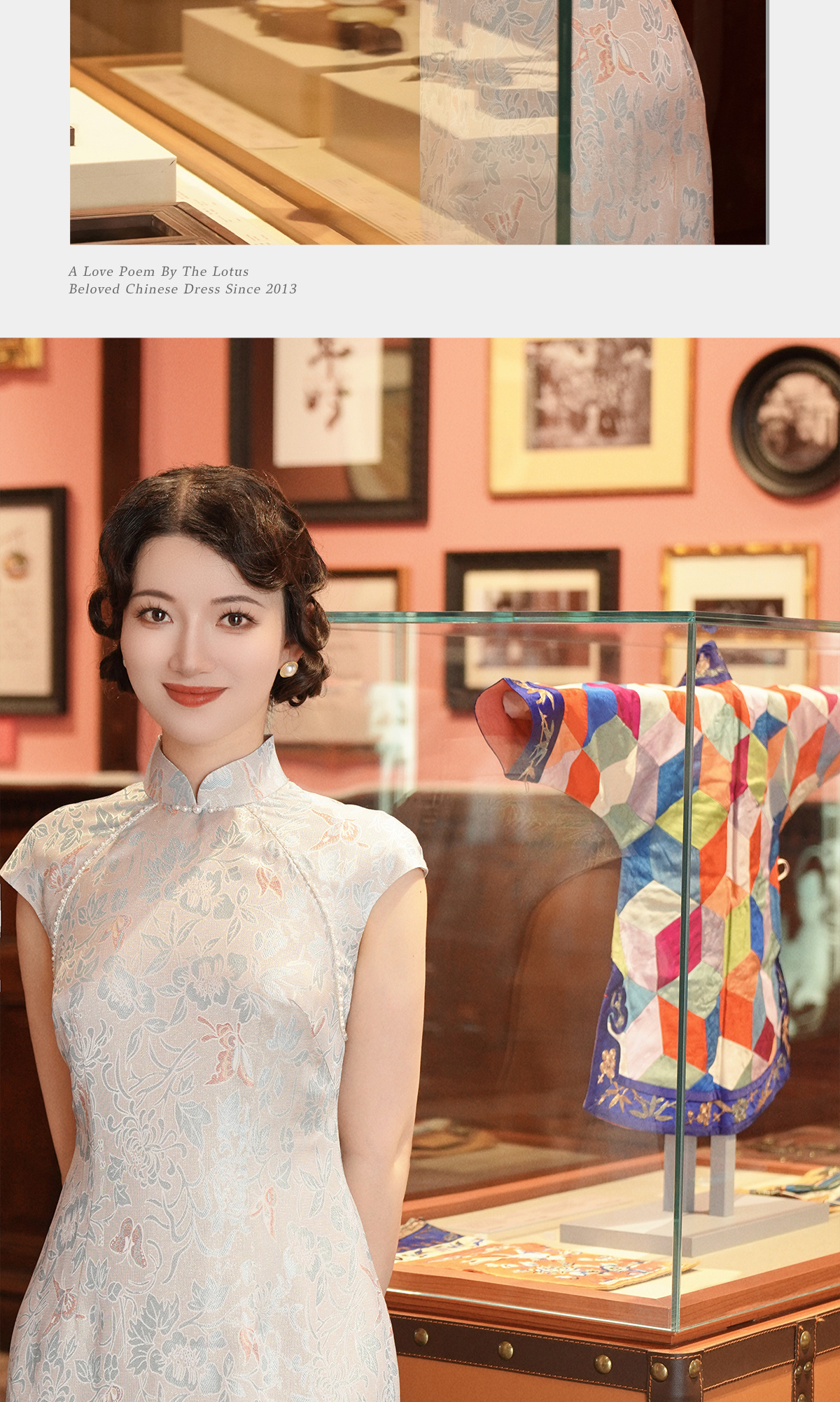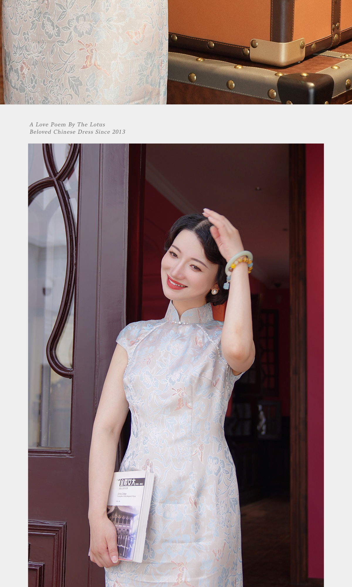 荷言GL 云露 仙子同款织金蝴蝶牡丹仿罗丝质旗袍