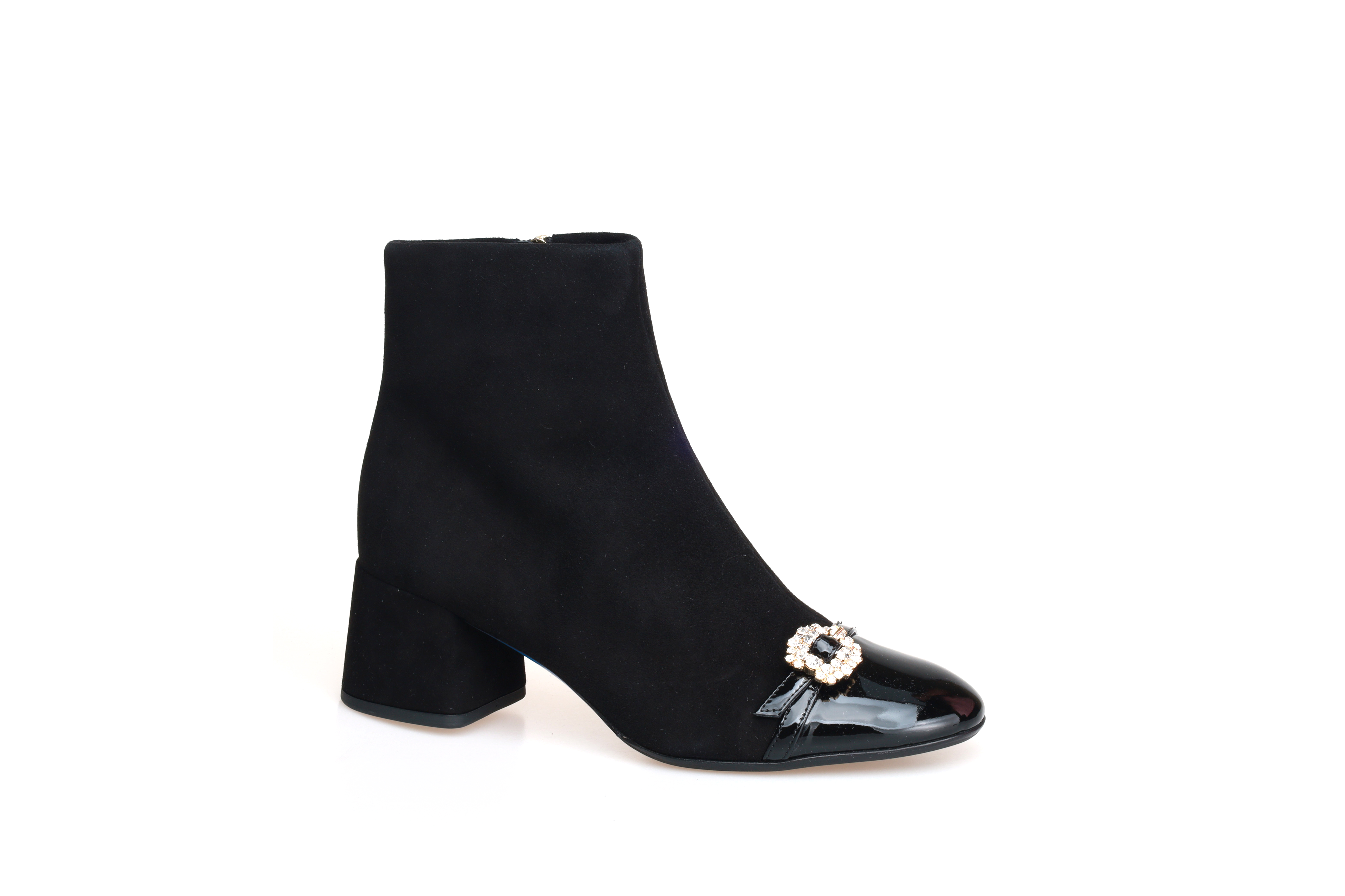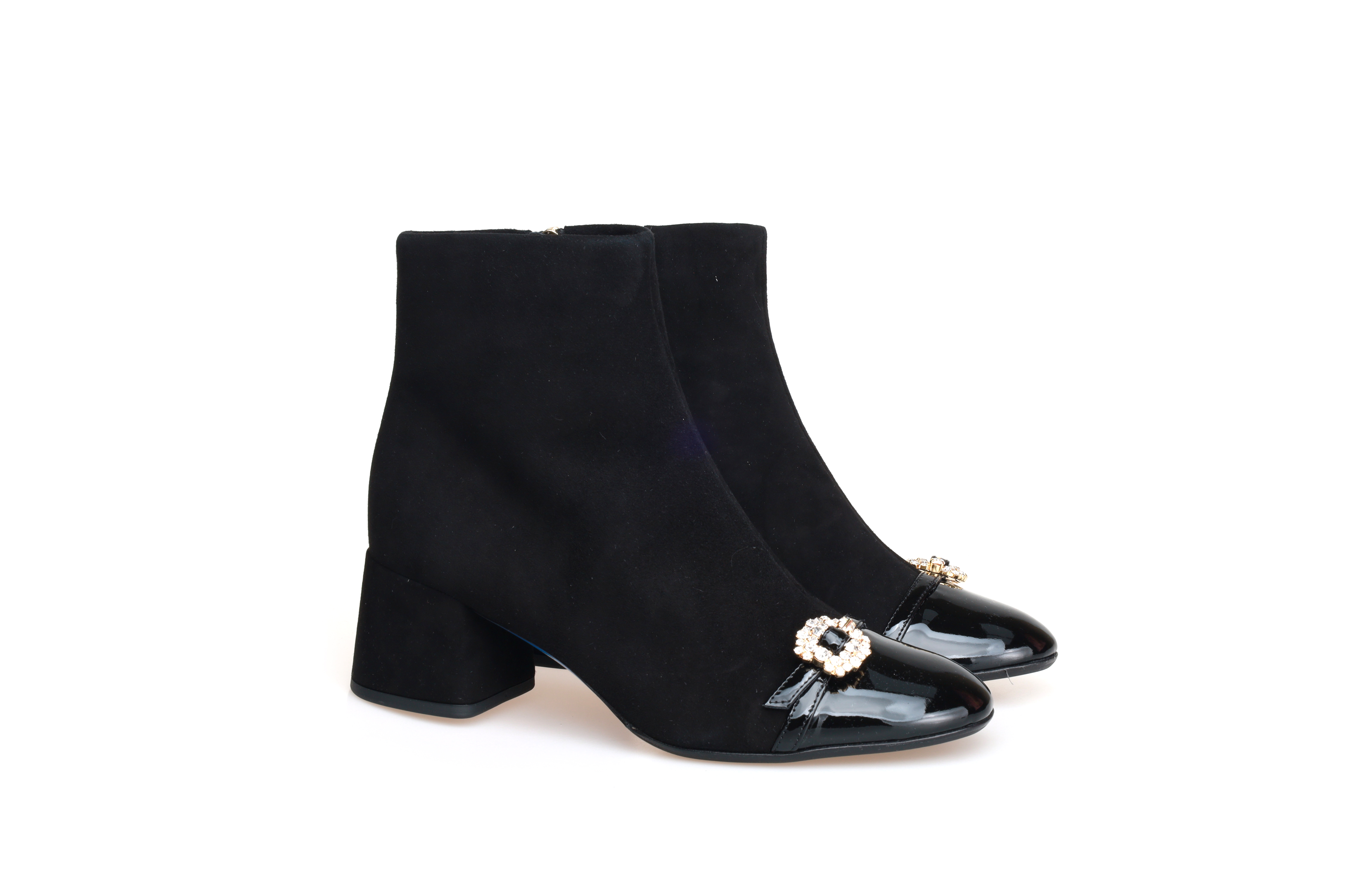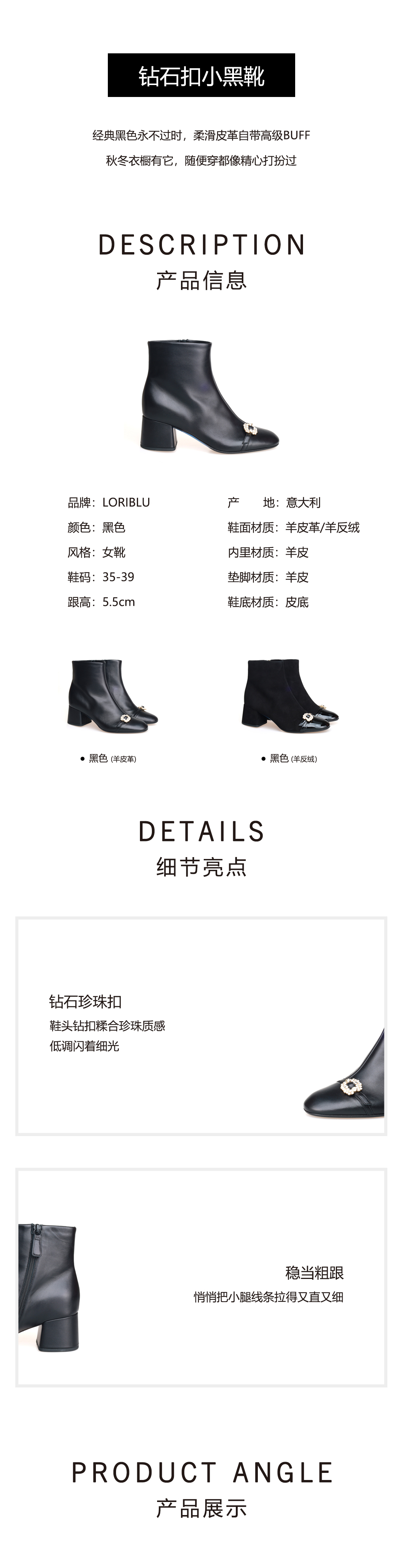 豪麟名鞋LORIBLU女鞋短靴羊反绒面革6AKTGE70黑色