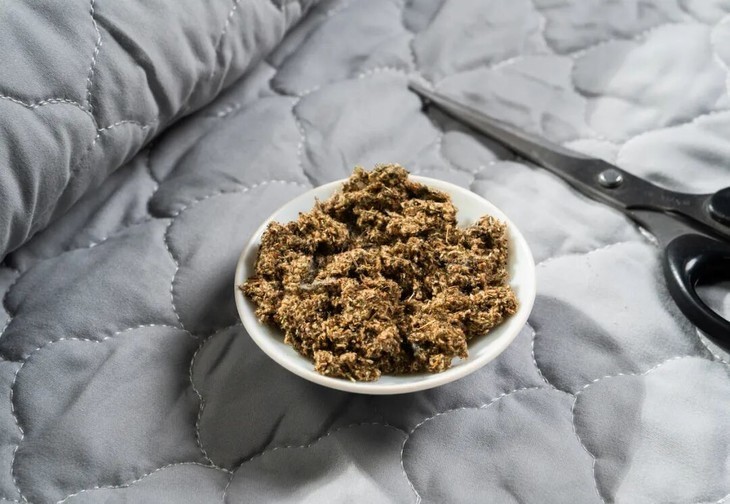 看,一剪开,里面填充的艾绒满满当当▼