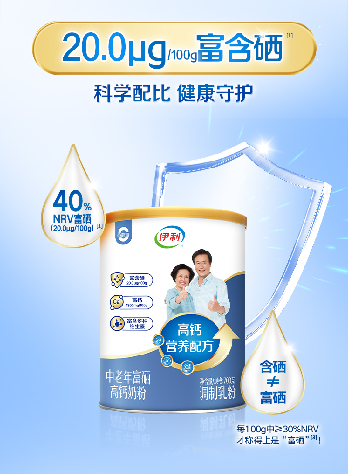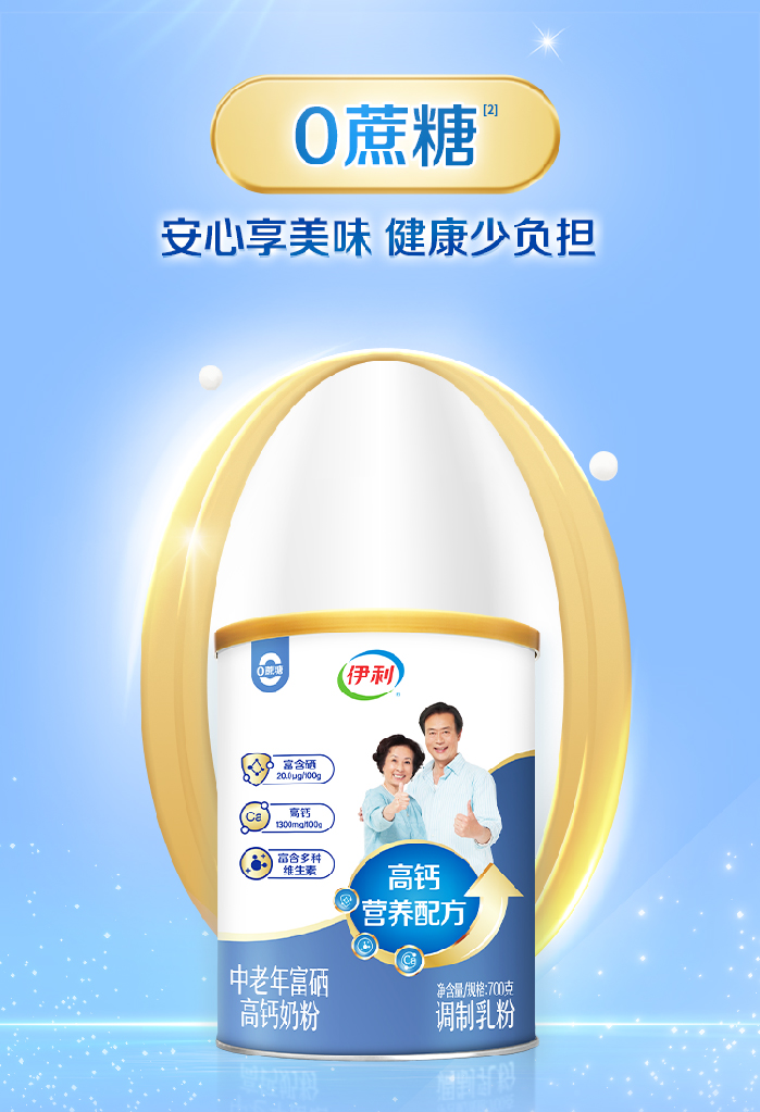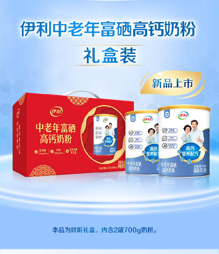 【冬日盛惠】伊利中老年高钙营养配方奶粉 富硒高钙奶粉700g*2 罐礼盒装