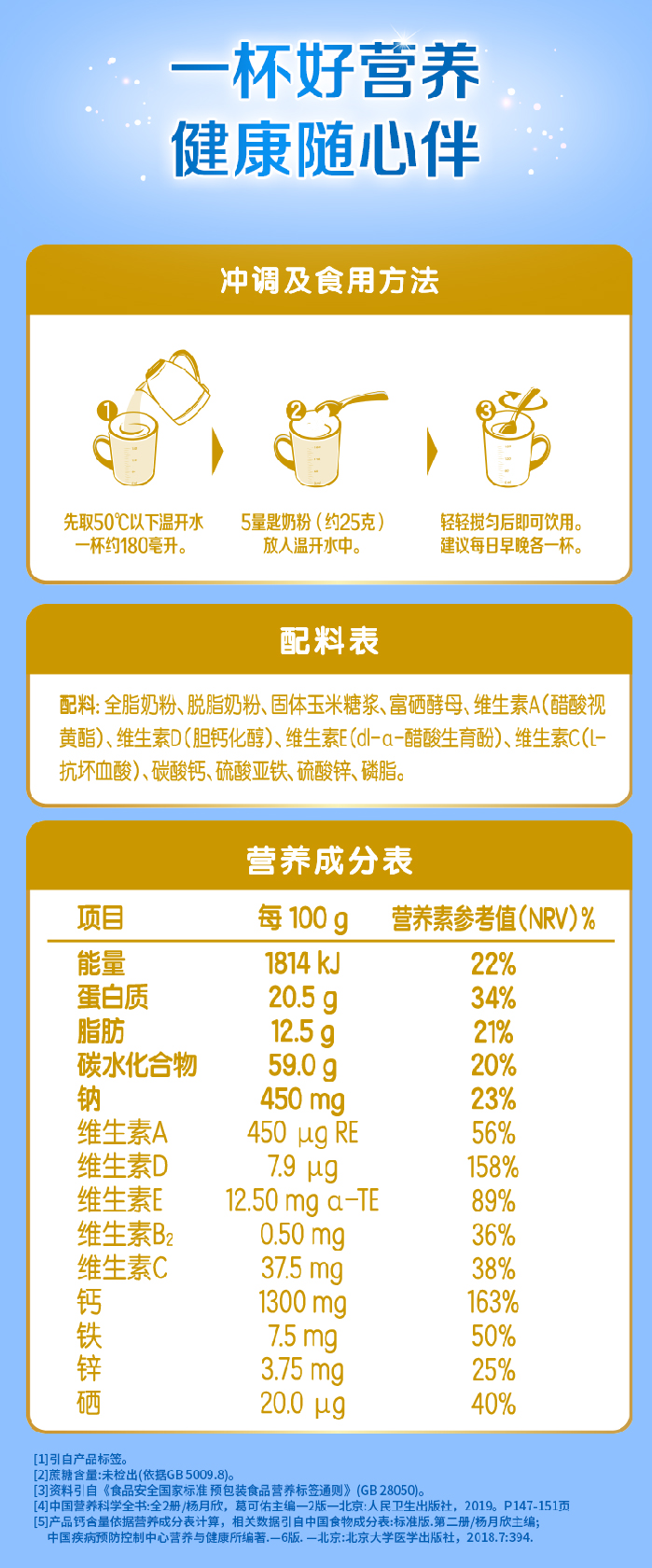【积分秒杀】伊利全脂甜营养奶粉 400g/袋(内含16小袋) 官方直营 增强骨骼活力(新老包装随机发货)