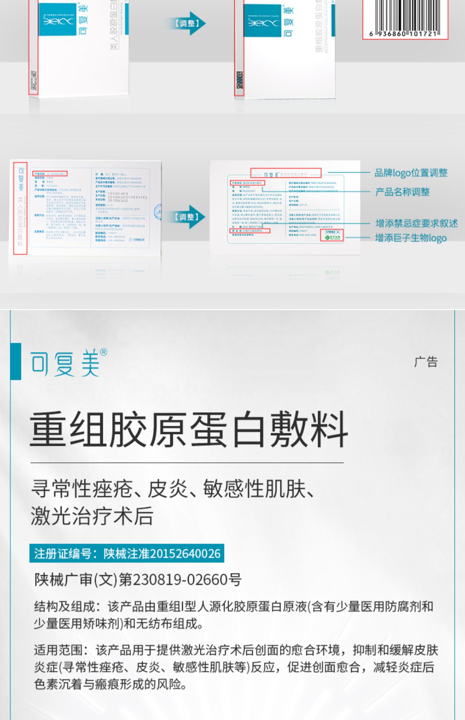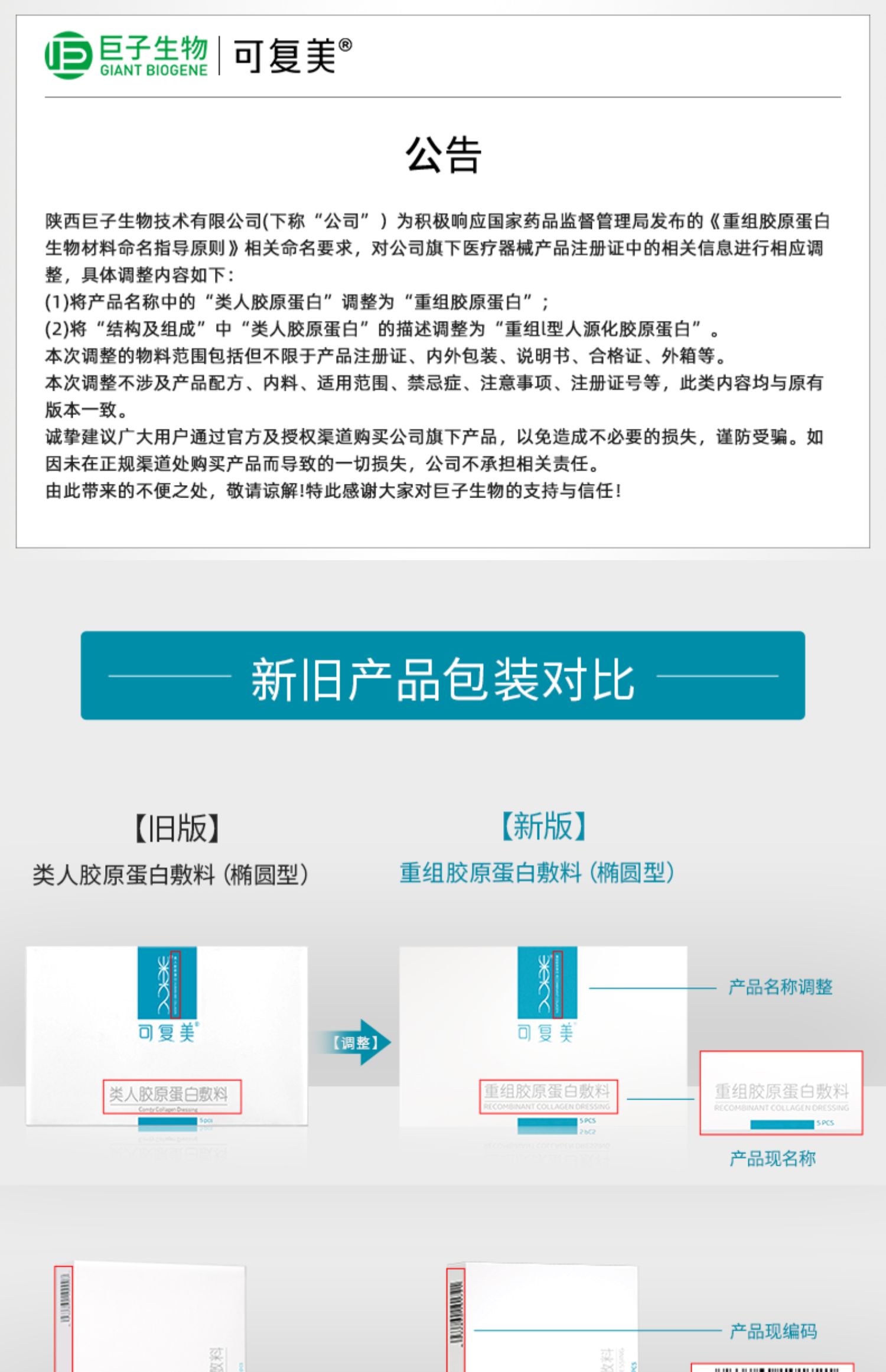可复美重组胶原蛋白敷料2盒10贴