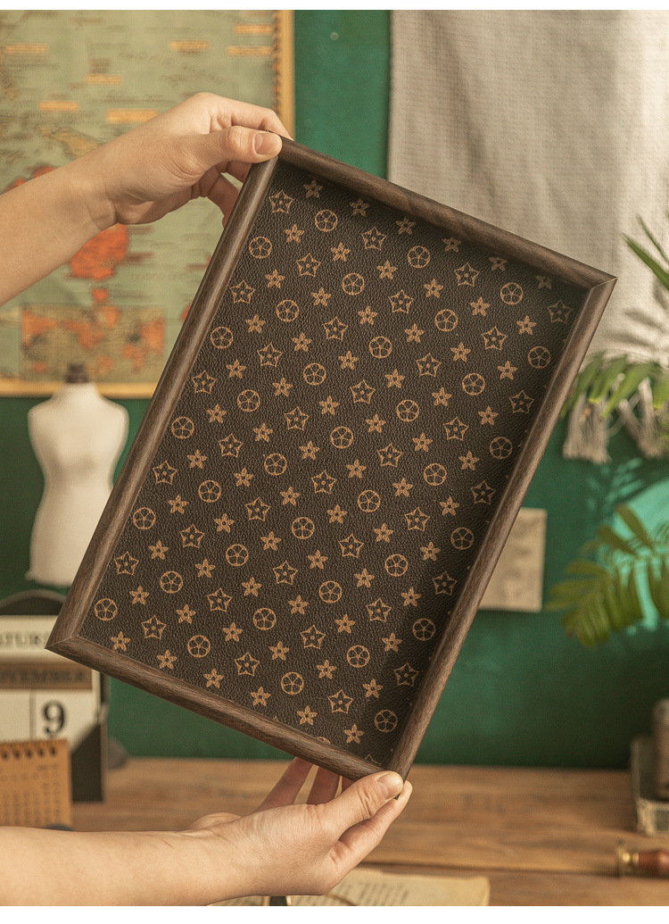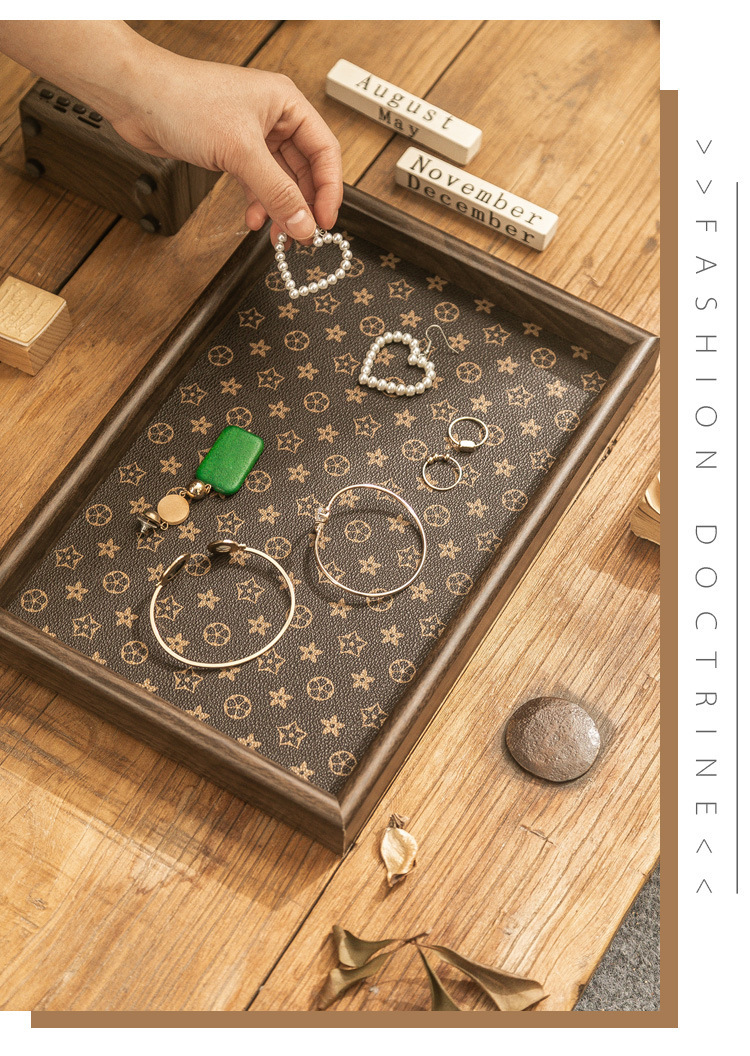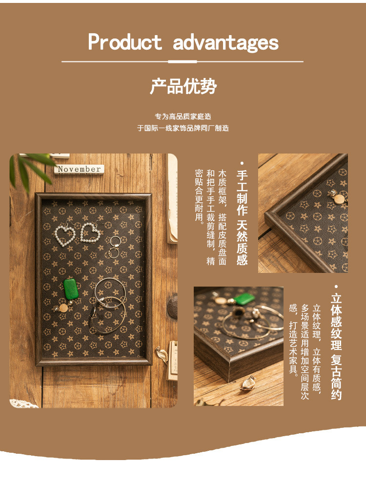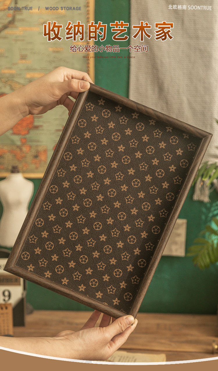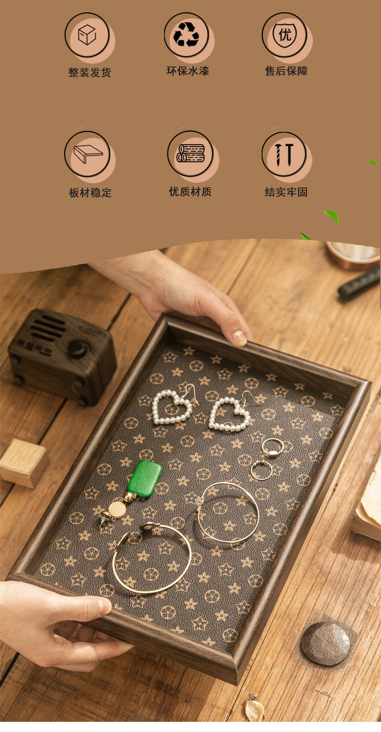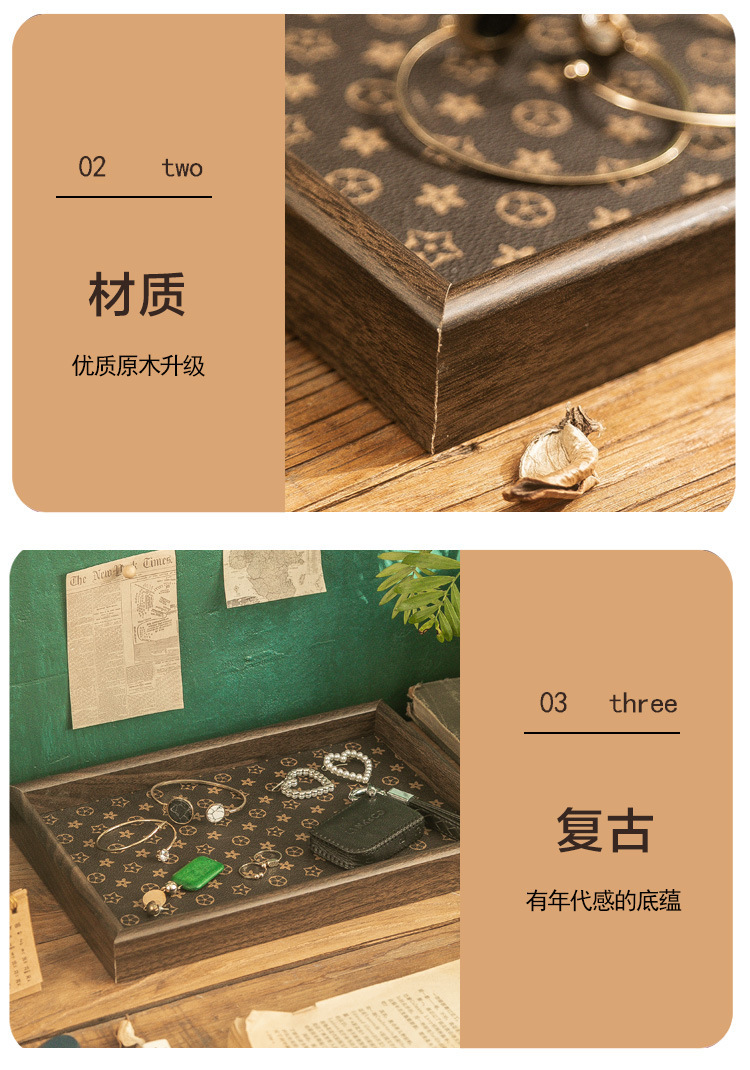 「抖音同款!轻奢质感」复古方形桌面首饰摆件钥匙玄关收纳盒 轻奢中式茶盘托盘收纳整理家居饰品