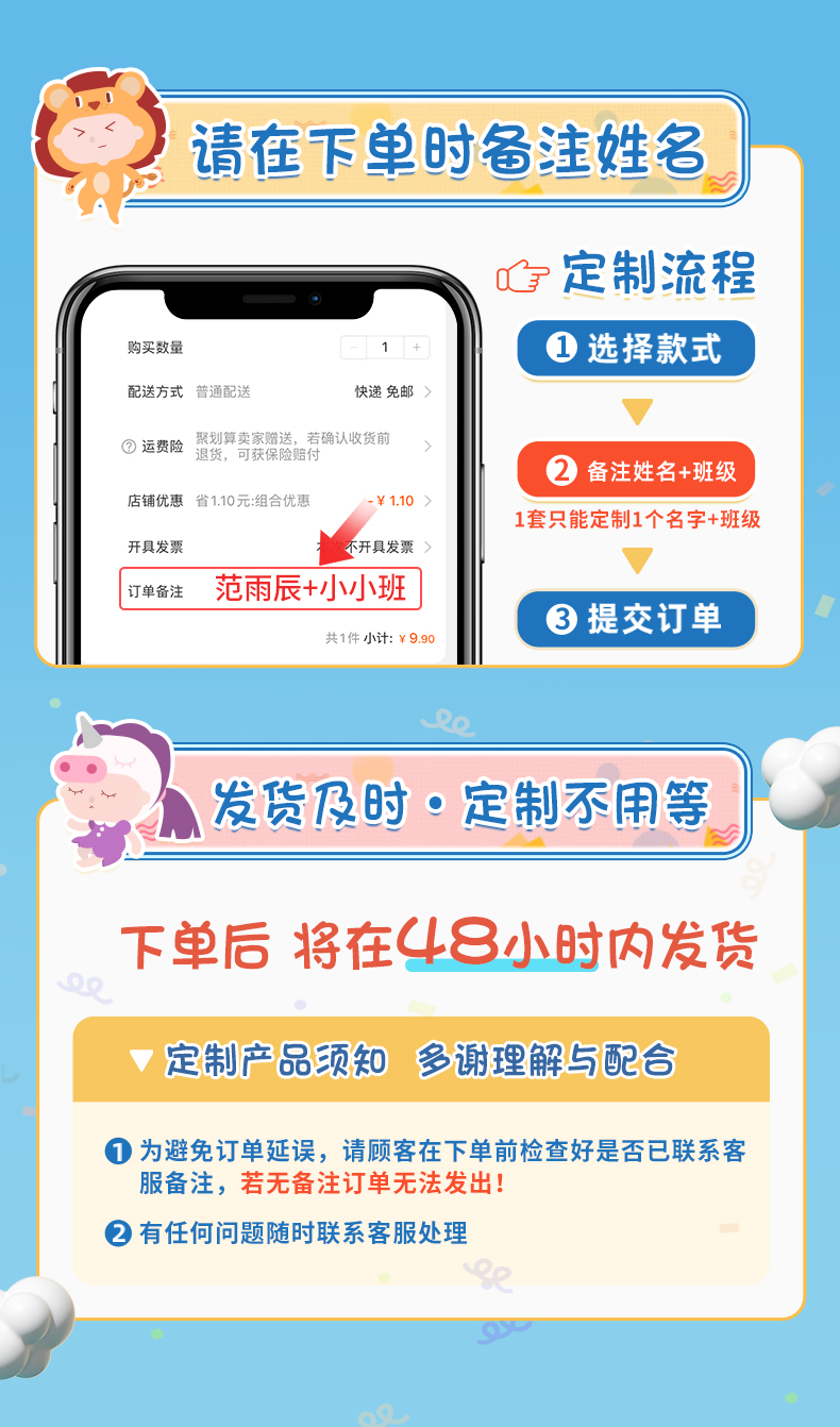 下单时请一定要记得备注定制内容!!否则发货时默认发送非定制款。