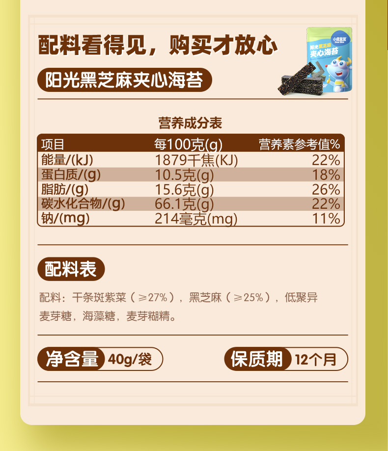 【任选专区】【36月+】海苔夹心脆黑芝麻味40g/X1袋