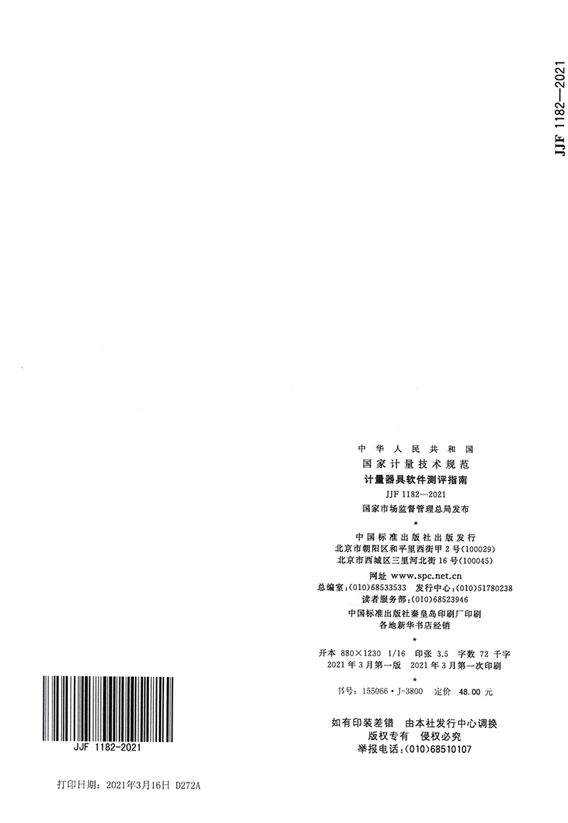 书名:速印不退 JJF 1182-2021计量器具软件测评指南