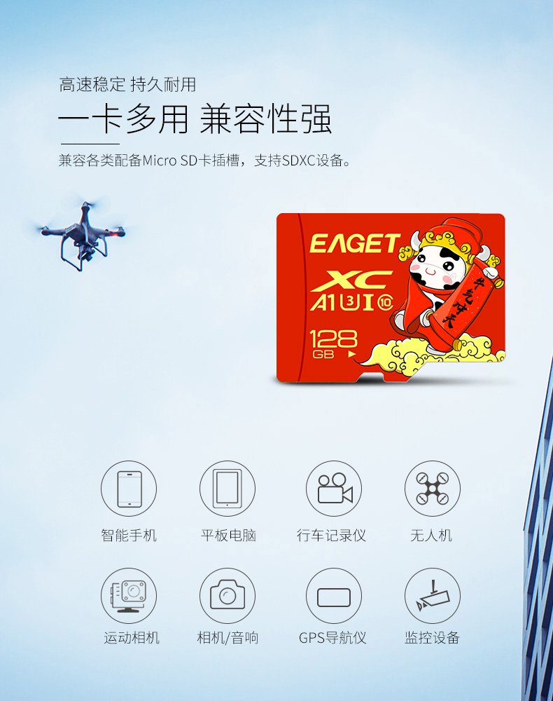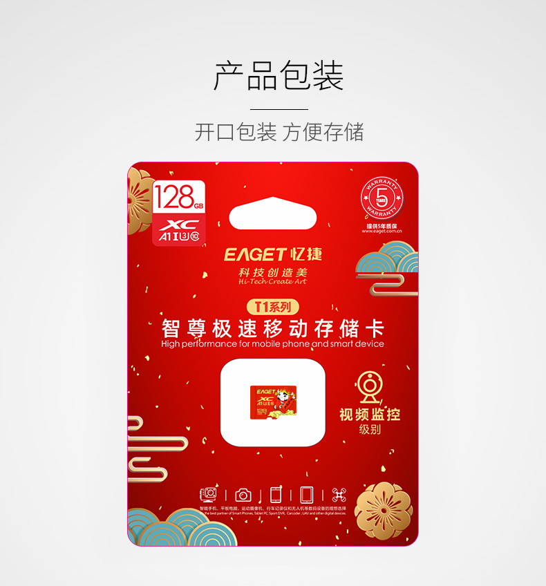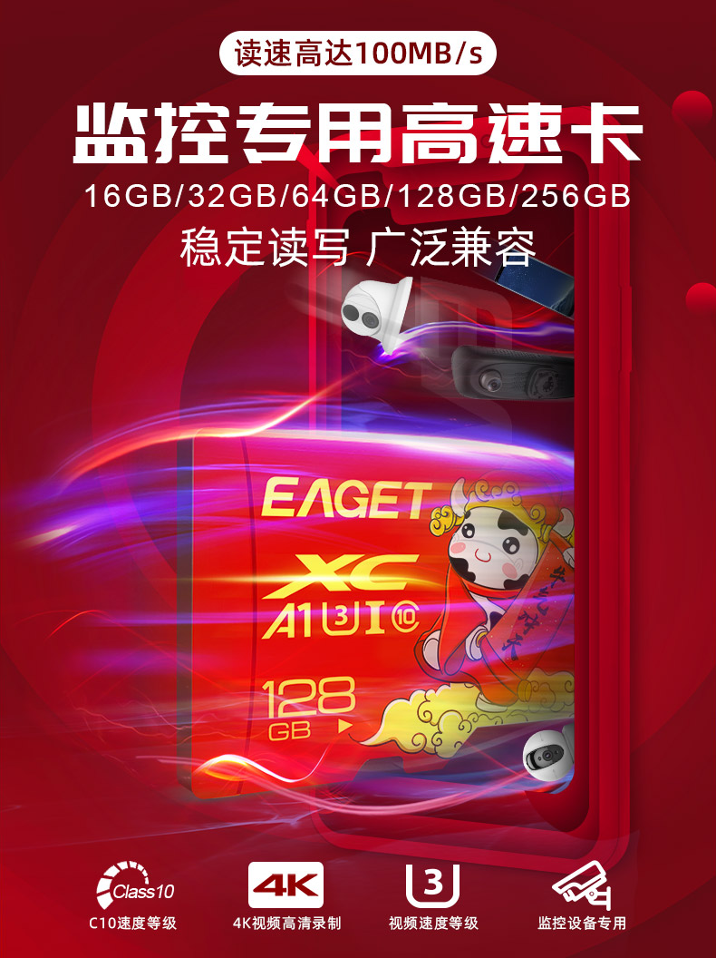 忆捷手机存储卡监控摄像内存卡TF卡高速行车记录仪sd卡c10高速卡 128GB