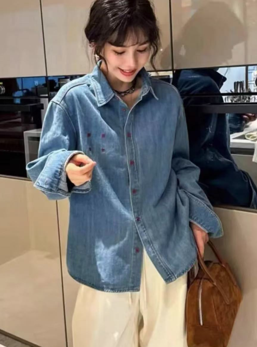 【春季服饰丨成人牛仔裤/牛仔衣系列】整体面料舒适耐磨,裤型简约大气,时尚好穿,包容多种身材,牛仔衬衣挺括有型,小翻领设计,加了亮色扣子和字母点缀,多场景都适合还很百搭
