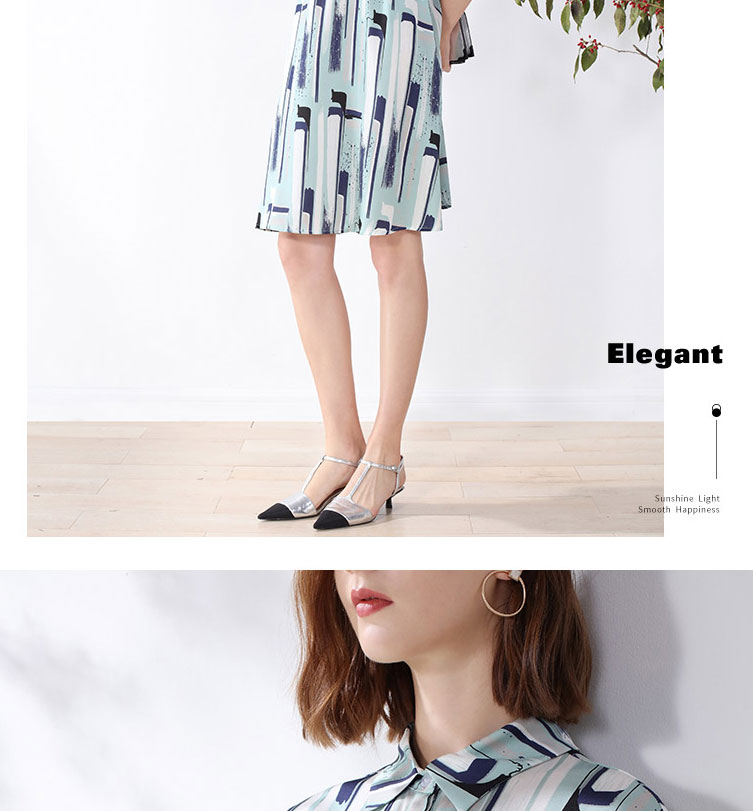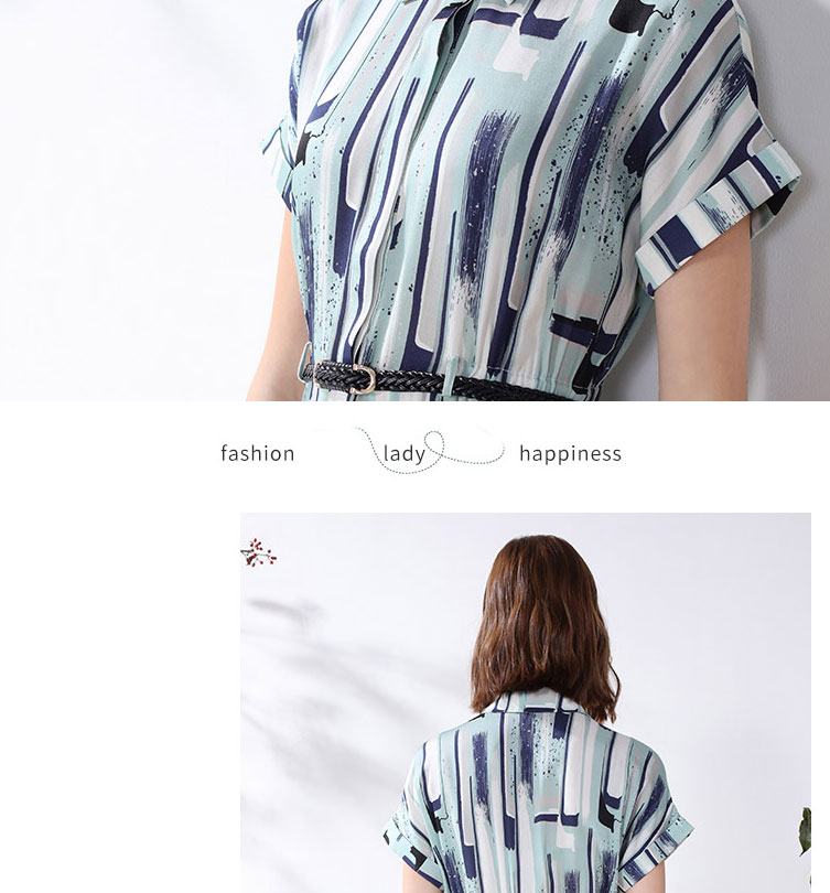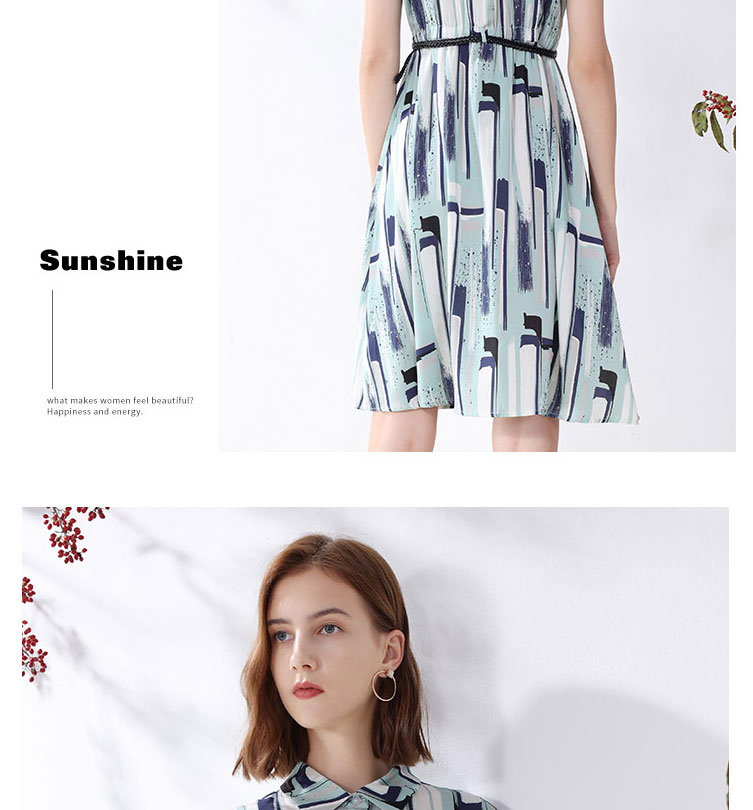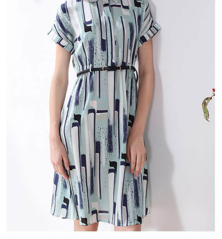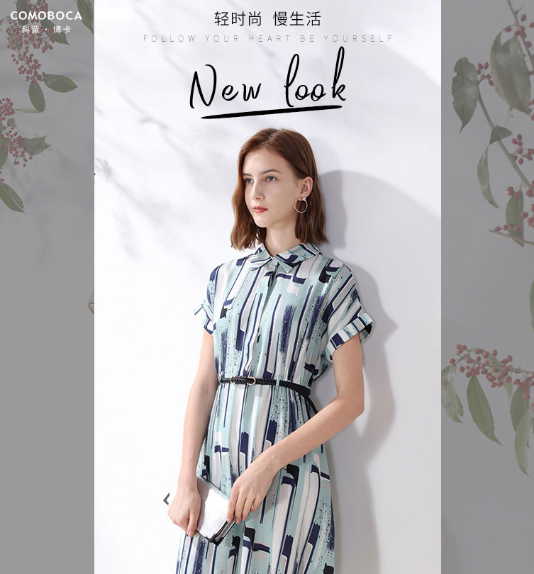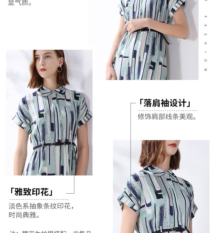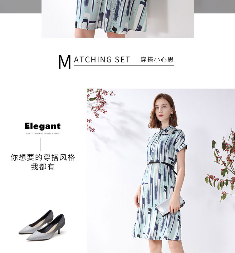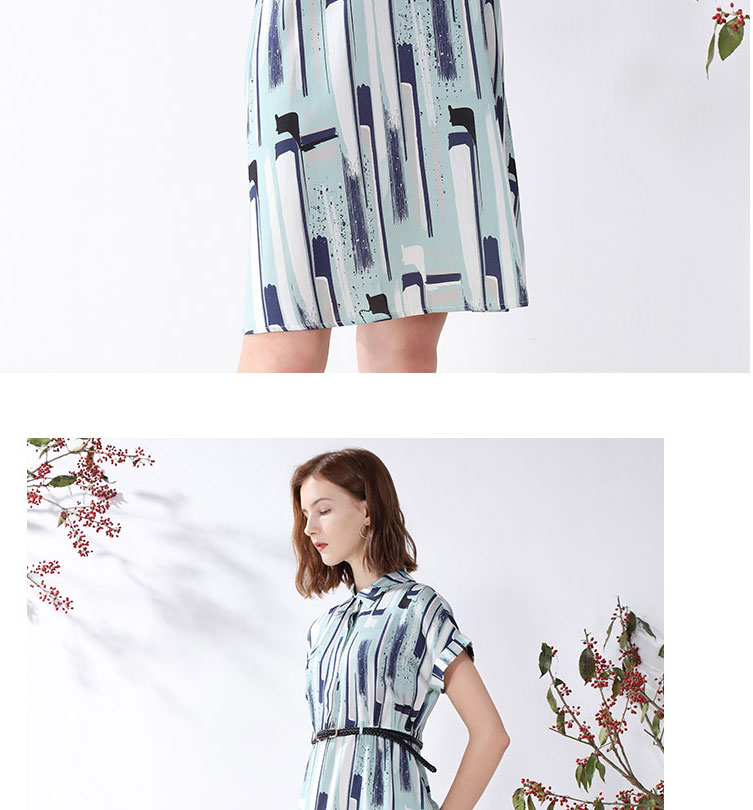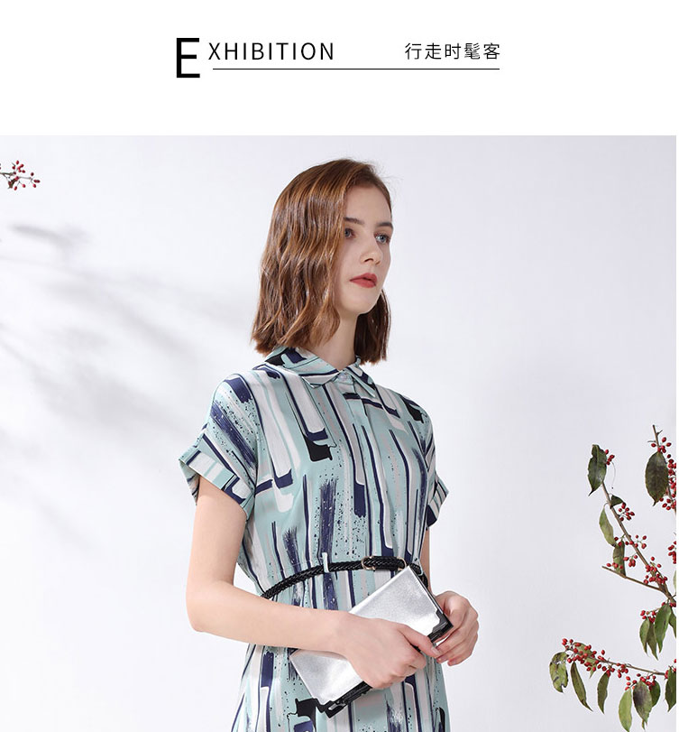 科蒙博卡夏季衬衫领OL风真丝裙女 淡色条纹印花桑蚕丝连衣裙KXNX001977B1