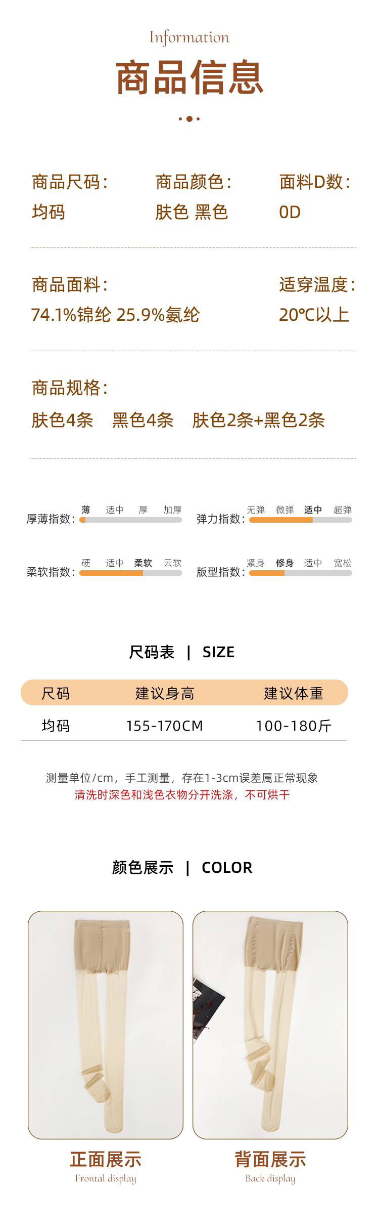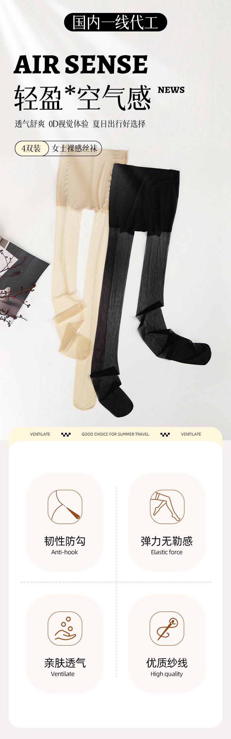 女士夏季裸感高透超薄隐形光腿神器连裤袜(4双装)