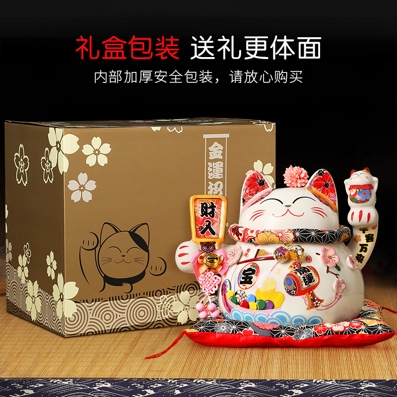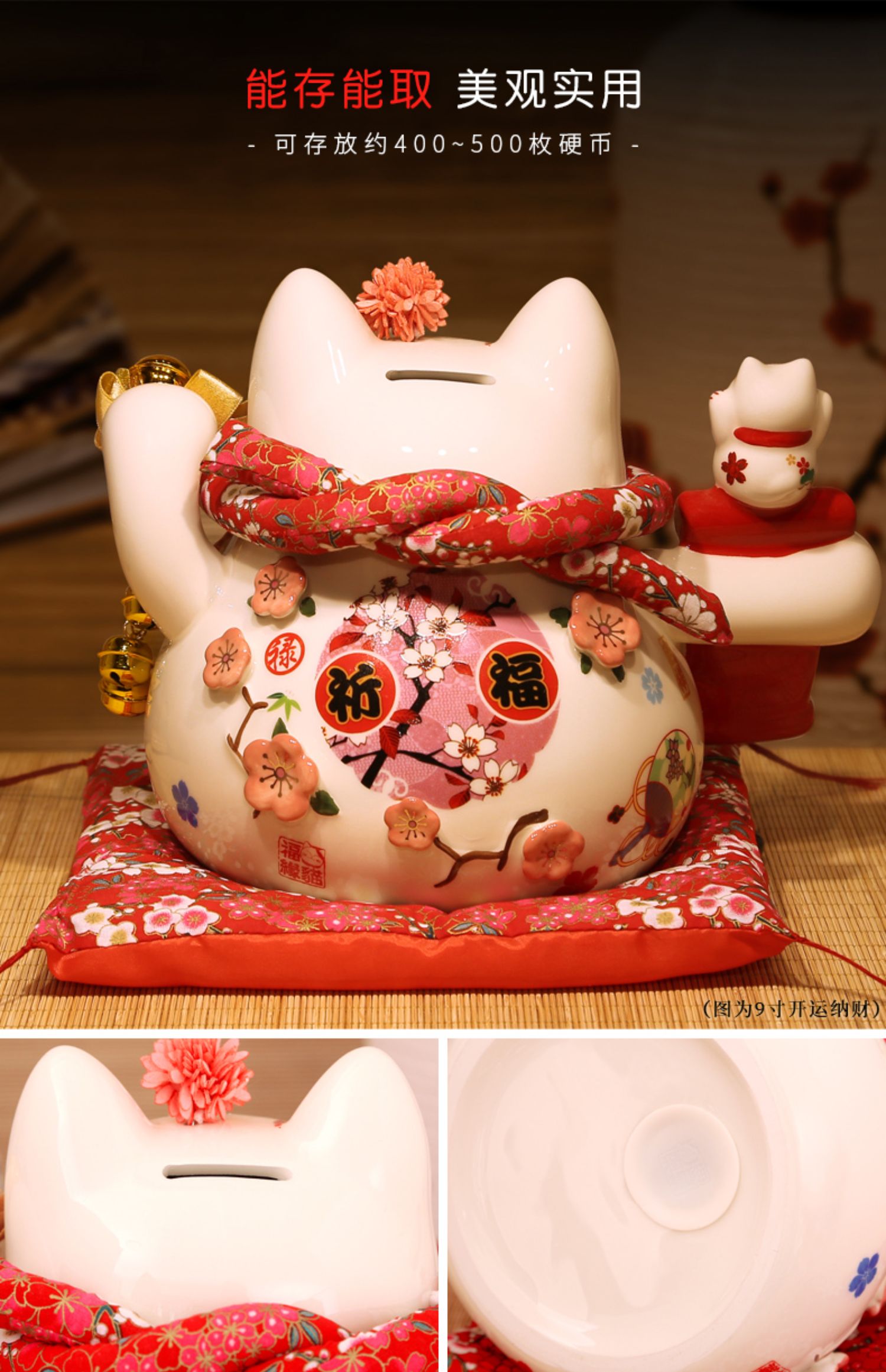 K-FYM-86560 开运纳财小花猫 招财猫存钱罐 (19*14.5*14)