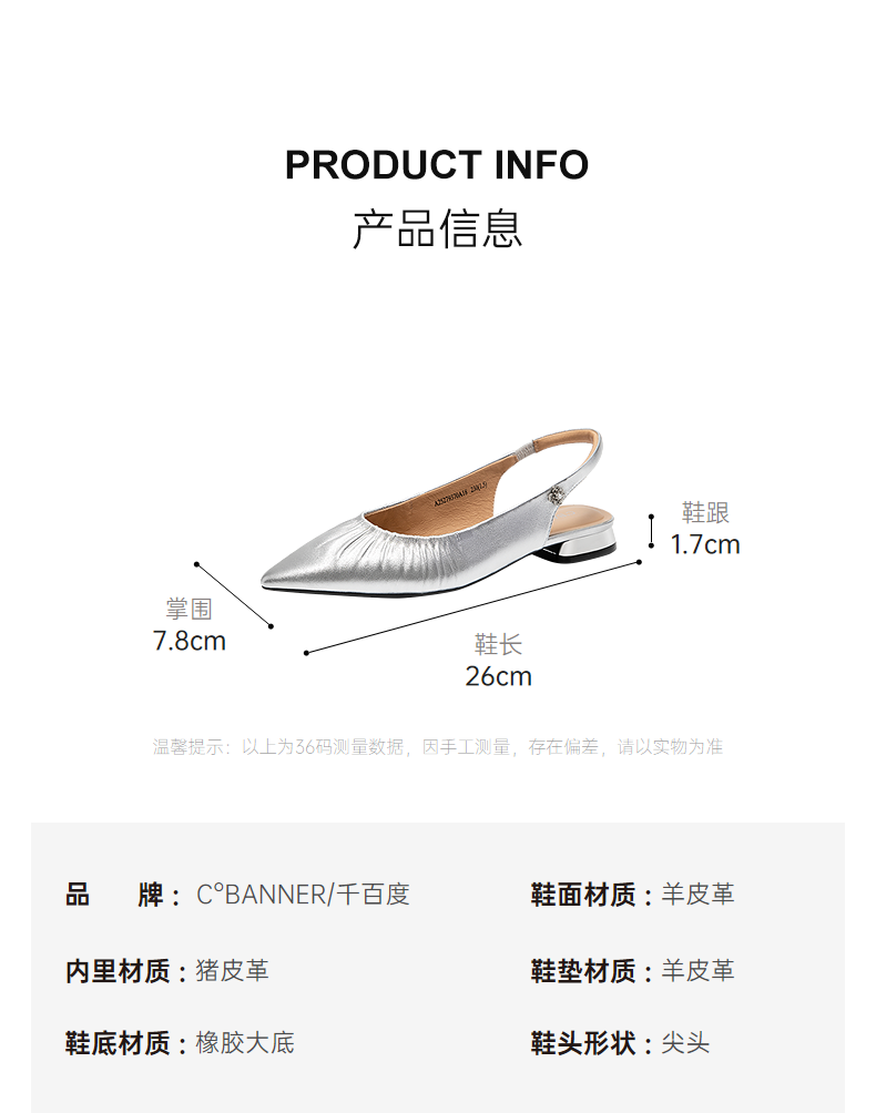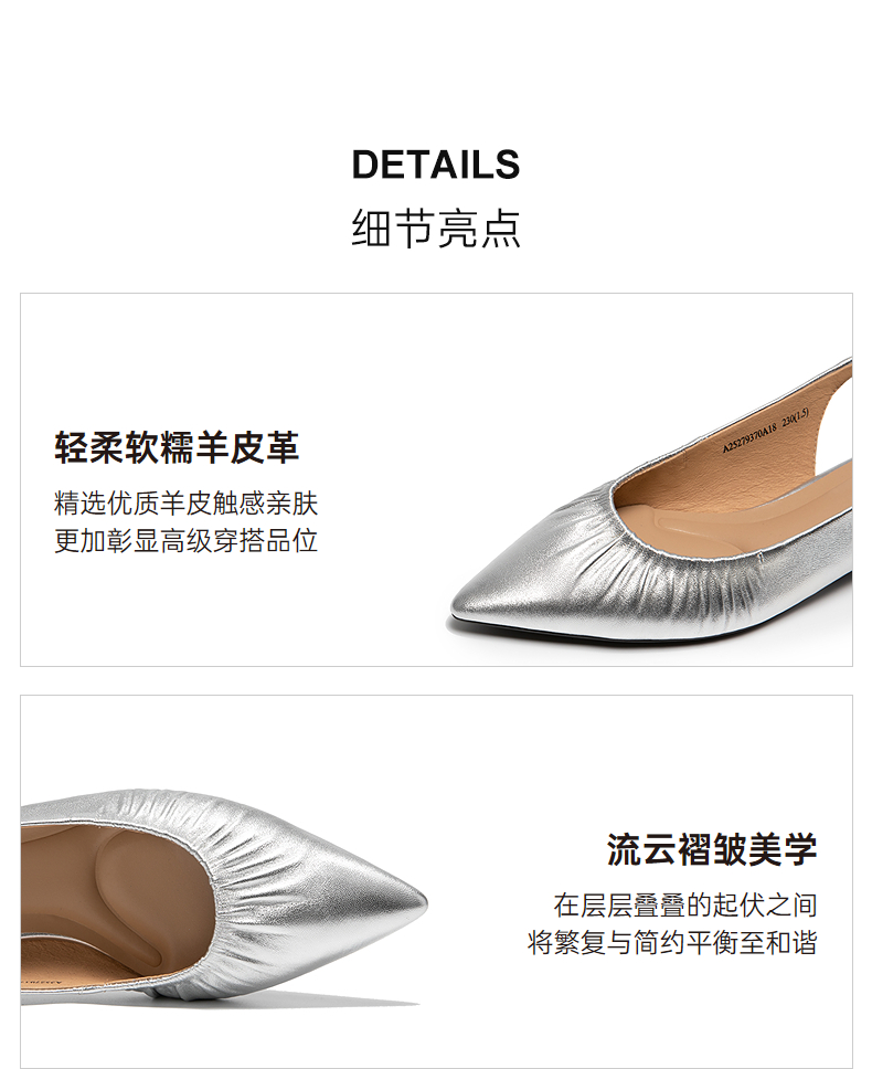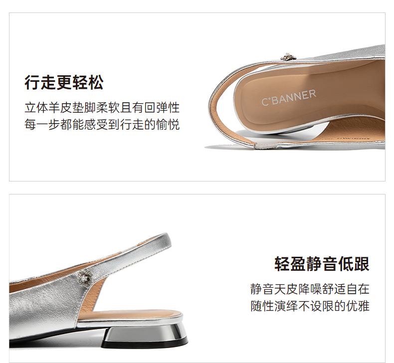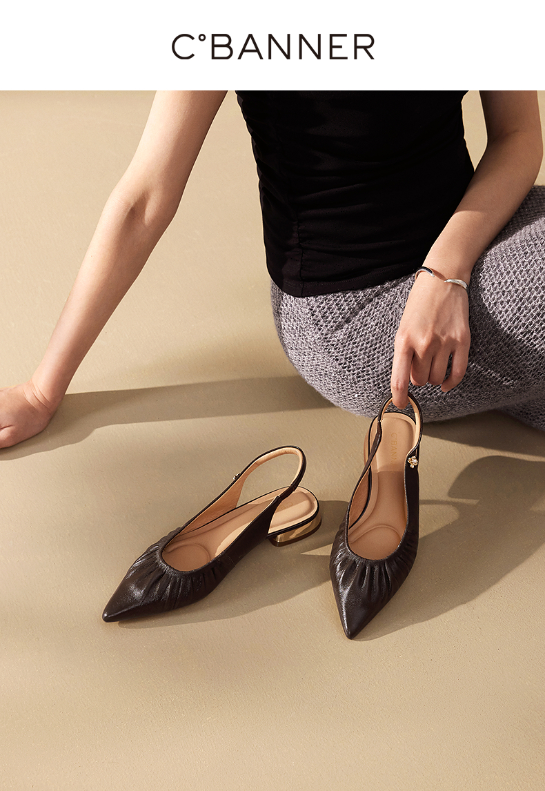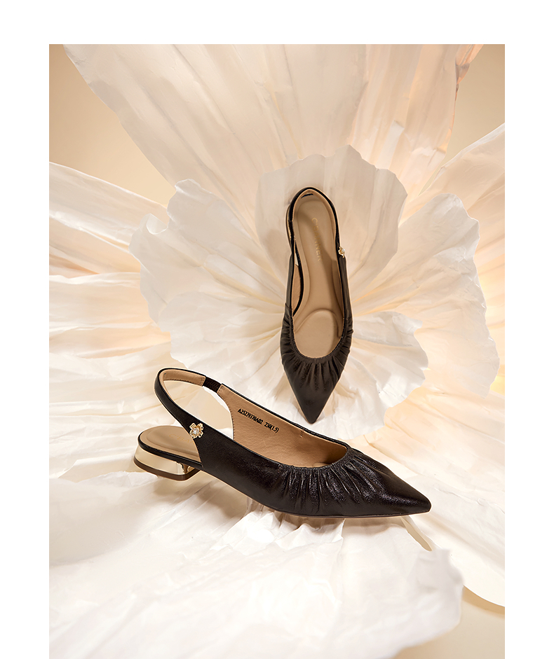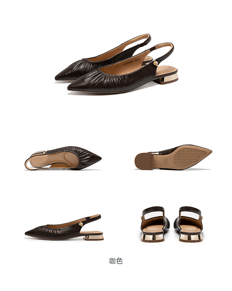 【静音系列】千百度流云羊皮低跟时装凉鞋女后空凉鞋A25279370
