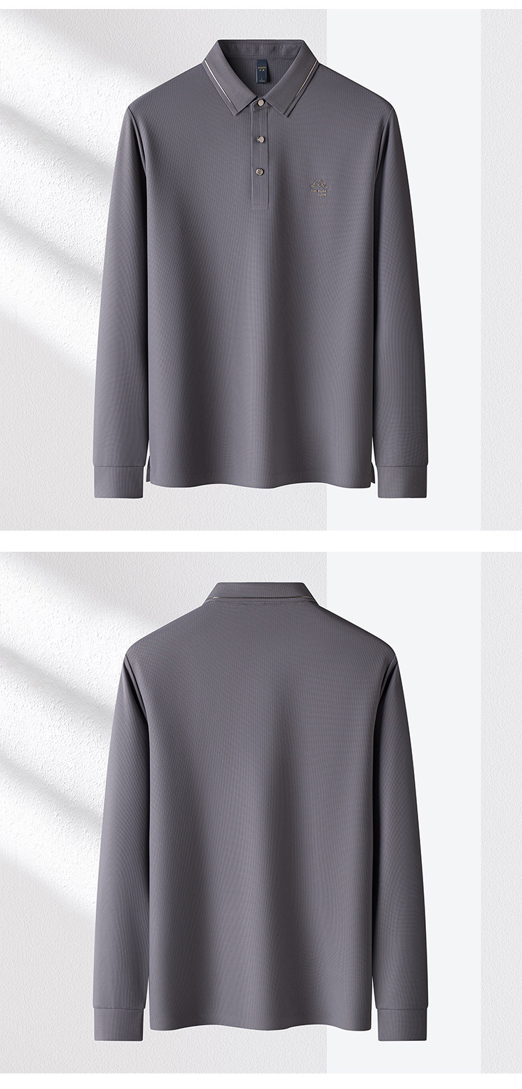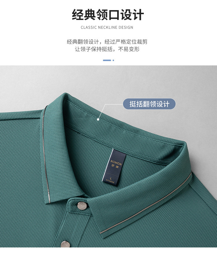 【华夫格】罗蒙春秋男士抗皱免烫polo衫男长袖t恤男商务男士polo衫